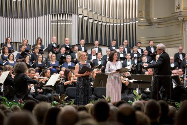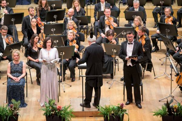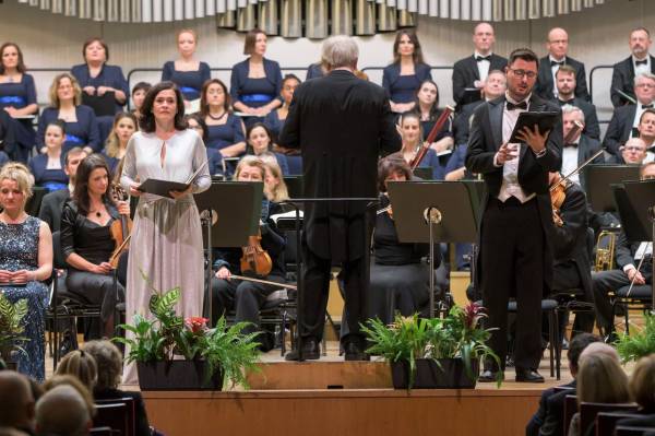 Mendelssohnovu Symfóniu č. 2 „Chválospev“ naposledy na pódiu Reduty uviedol s Mníchovskými filharmonikmi a Mníchovským filharmonickým zborom charizmatický Thomas Hengelbrock v rámci Bratislavských hudobných slávností 2019. V pamäti mi ostal zvláštny nápad, keď nemecký dirigent pred nástupom zboru v siedmej časti poslal sólovú sopranistku zaspievať jedinú frázu Die Nacht ist vergangen do balkónovej lóže. Petr Altrichter si pri kreovaní diela počínal so suverenitou skúseného, no zároveň hlboko inšpirovaného majstra. K Mendelssohnovej symfonicko-vokálnej tvorbe má blízko: pred rokmi s našimi filharmonikmi predniesol skladateľovo oratórium Elias. Z úvodnej orchestrálnej trojčasťovej Sinfonie (programový bulletin mätúco uvádzal iba jednu časť) pod jeho rukami nádherne znelo poetické Adagio religioso, v zborových častiach zasa akcentoval hymnický charakter skladby, ktorý dopĺňali pôsobivé lyrické vstupy ideálne zladeného vokálneho tria sólistov, vedeného podmanivým hlasom prominentnej sopranistky Simony Houdy Šaturovej.