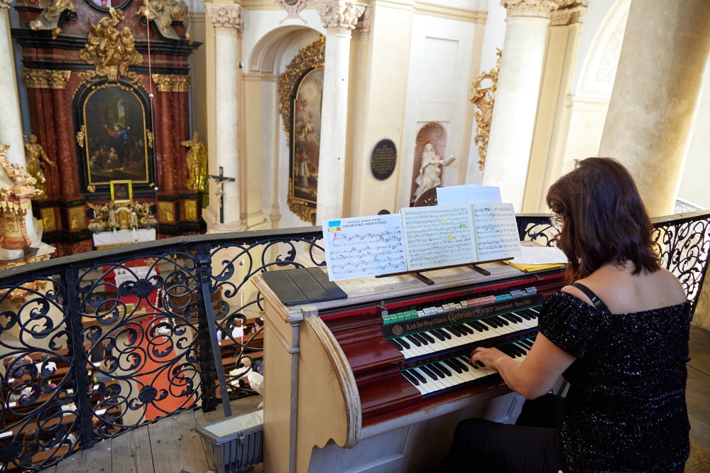 Ve druhé polovině večera „přesedla“ Eva Bublová od cembala k varhanám a zahrála na úvod dílo (snad) Wolfganga Amadea Mozarta, takzvanou Strahovskou improvizaci, K. 528a. Tato méně známá kompozice vznikla pravděpodobně na podzim roku 1787, kdy po světové pražské premiéře Dona Giovanniho navštívil Mozart Strahovský kostel, kde projevil zájem zahrát si na místní varhany. Tuto Mozartovu improvizaci na výrazné čtyřtónové téma zřejmě zaznamenal jeden z přítomných mnichů – hudebníků (podrobněji ZDE). Následující tenorová árie Giuseppe Verdiho – Ingemisco (Povzdech) z části Dies irae jeho slavného Requiem zazněla už z kůru kostela a přesvědčila o širokém repertoárovém záběru Petra Nekorance. Navíc bylo zajímavé sluchově porovnat oba prostory. Přeci jenom je kůr akusticky vděčnější, což se plně zúročilo právě v romantické Verdiho árii. Právě na toto provedení reagovalo publikum opět dlouhým potleskem. Následující citlivě zazpívaná Modlitba Leoše Janáčka byla nejen pro mě jistým repertoárovým překvapením (pochopitelně se nejednalo o slavnou Modlitbu Jenůfy z Její pastorkyně ani o Otče náš). Myslím, že málokdo vůbec tuší o existenci této zřejmě rané kompozice, která nefiguruje ani v oficiálním katalogu Janáčkových děl (snad jako část Lehnerova kancionálu – JW II/10?).