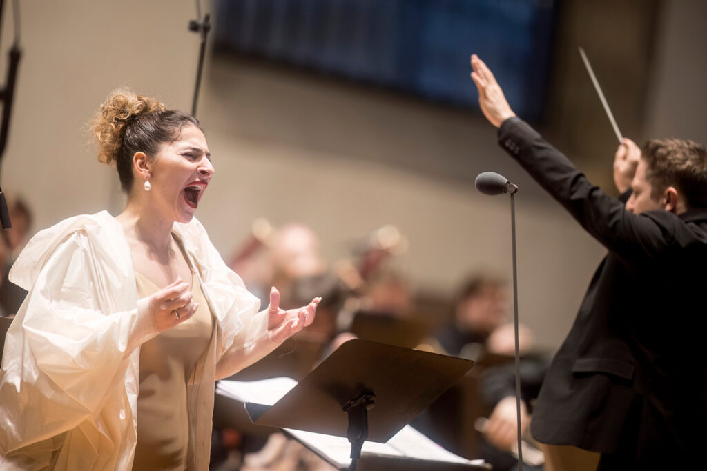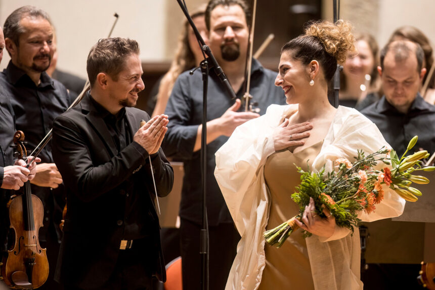 První Mahlerovou písní, kterou Bella Adamova přednesla, byla Ging heut morgen übers Feld, s vkusnou mírou koketnosti, přičemž se nenechala svést k opernímu projevu. Píseň podala velice procítěně, až zasněně a bylo vidět, že je s dílem sžita. Vrcholem večera pro mě byla další píseň z tohoto cyklu Wenn mein Schatz Hochzeit macht, při níž se publikum doslova opájelo hlasem Belly Adamové, která podala nesmírně sugestivní a niterný projev. Obzvláště nápaditou orchestraci zvládli Rozhlasoví symfonikové na výbornou, bylo očividné, že mladý sympatický německý dirigent Gregor Mayrhofer Mahlerovi rozumí a orchestr náležitě připravil. Mezzosopranistka skvěle pracovala s dynamikou a energií potřebnou k interpretaci takto intimně pojatých písní, výborně odstiňovala dramatické od lyrických pasáží a opět demonstrovala své sametové hloubky. Jak se vyznala v nedávném rozhovoru, Gustav Mahler jí nesmírně imponuje. Nutno dodat, že mu i rozumí, jak ostatně ukázala i při nedělním koncertu Lieder Society, kde přednesla jeho píseň Prasvětlo způsobem, ze kterého se tajil dech.
