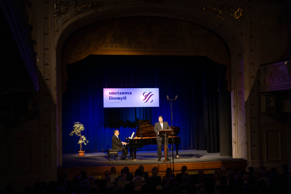 V pátek odpoledne ve Smetanově domě zpíval Jan Martiník Dvořákovy, Křičkovy a Smetanovy písně. Byl to nejprve výběr z dvojího zpracování veršů Vítězslava Hálka: z Večerních písní mladého Antonína Dvořáka a z Večerních písní Bedřicha Smetany. Hálkovy milostné básně postrádající erotický podtext zavedly vyzrálého umělce až k výrazovému apelu přesahujícímu rámec intimní lyriky směrem k hudbě určené národu.