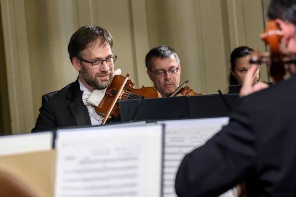 Barytonista Konstantin Krimmel a nový koncertní mistr Michal Sedláček