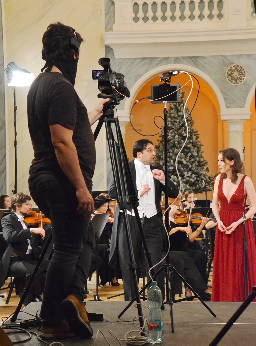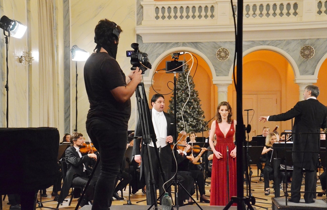 Posaz se v sále, kde orchestr běžně zkouší a hraje, přizpůsobil kamerám, prostředí s decentní předvánoční výzdobou bylo pěkným rámcem. Ve zhruba sedmdesátiminutovém programu zazněly árie a ansámbly z oper W. A. Mozarta Don Giovanni, Figarova svatba, Cosi fan tutte a Titus, z Rossiniho Italky v Alžíru, Donizettiho Nápoje lásky, Verdiho Traviaty, Bizetovy Carmen a Smetanova Tajemství.