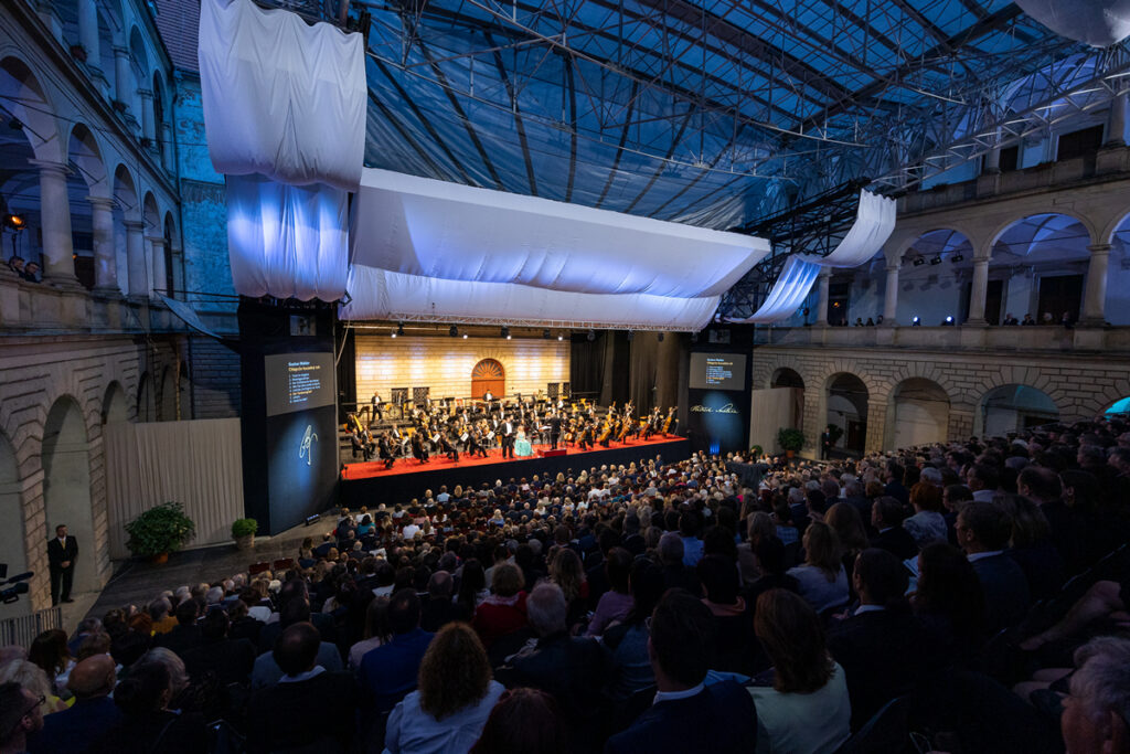 Auditorium s výsuvnou střechou a pro tisícovku lidí, které se budovalo uvnitř nádvoří každé léto od druhé poloviny 90. let, dospělo ke konci životnosti. Definitivně mu odzvonilo v souvislosti s rekonstrukcí zámku započatou v roce 2023 – naposledy tedy bylo využito v roce 2022.
