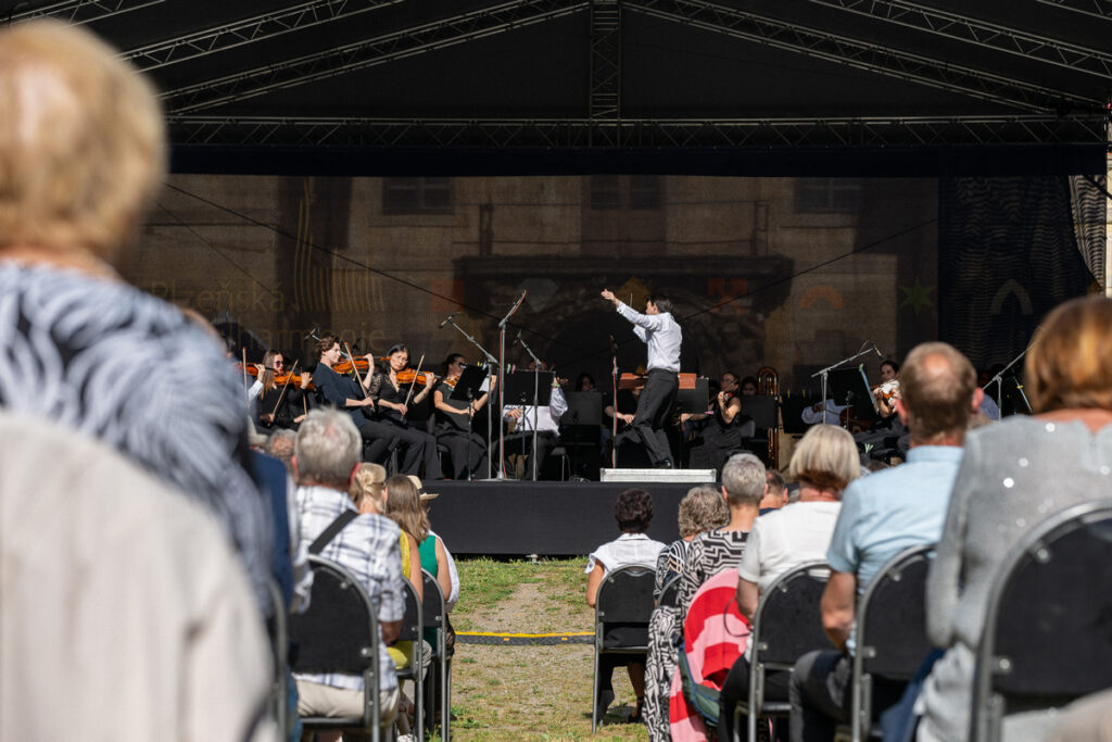 Sobotní odpolední koncert byl před prázdninami důstojným rozloučením symfonického tělesa s jeho příznivci, kteří do Křimic vážili cestu z nedaleké Plzně, aby se v kouzelném prostředí zámeckého parku připojili k místním posluchačům.