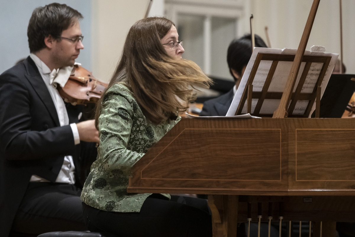 Jana Málka, letos osmdesátiletého, prezentovalo na přehlídce Divertimento „Paví pero“ z roku 1979 – smyčcová skladba zarámovaná jakoby barokními tóny, uvnitř nicméně hudebním jazykem o něco soudobější a náročnější, skladba zvukově docela hutná, ale přehledná, celkově nabízející svým směřováním a vyzněním plné uspokojení. Tvorba Jiřího Temla, letos třiaosmdesátiletého, byla zastoupena cembalovým koncertem. Concerto per clavicembalo ed orchestra da camera, deset let staré, šikovně staví sólový nástroj a orchestr do kontrapozice. Cembalo může vyniknout, není zvukově zakryto. Sólový part i orchestrální part přitom často používají podobné prostředky – zahuštěné, dramaticky vyznívající akordy, shromažďované do naléhavých hutných shluků. I tady byl orchestr partnerem či protihráčem až zbytečně předimenzovaným. Monika Knoblochová se Temlovým skladbám pro cembalo nebo s cembalem věnuje soustavně, jsou to vděčná a sdělná díla. I tentokrát se za dílo jednoznačně postavila, hrála na sto procent a nenechala nikoho na pochybách, že to vše stojí za to.