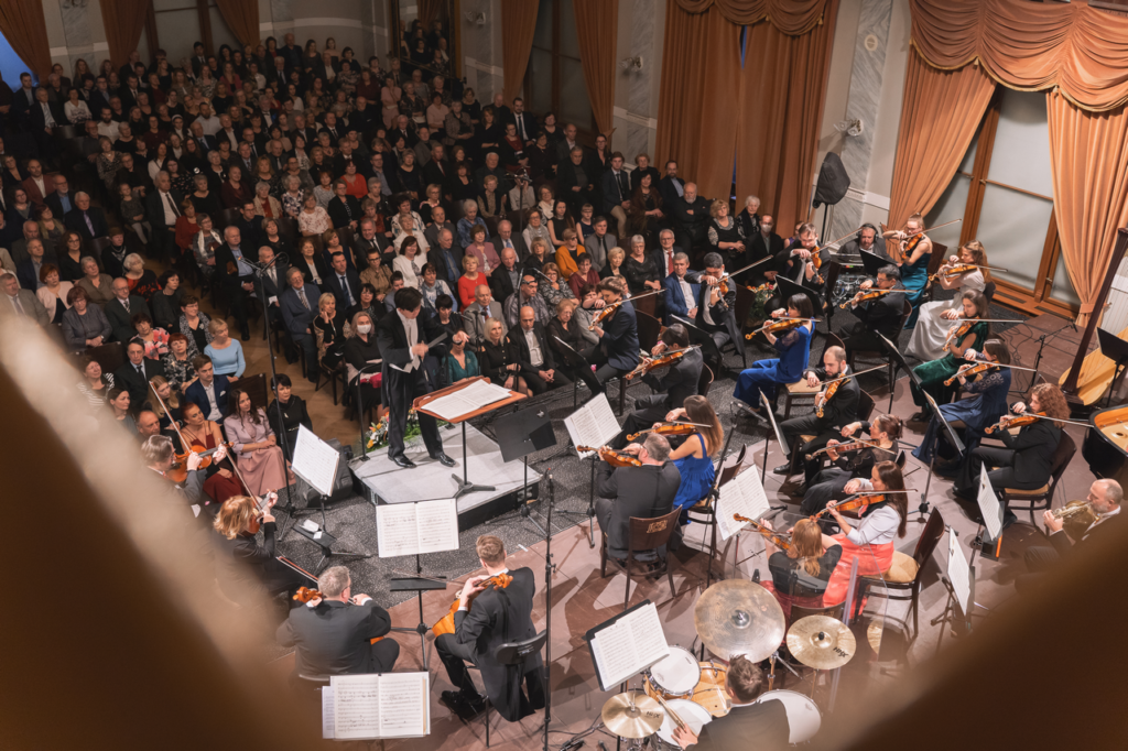 Po úvodních zdravicích ředitelky tělesa Lenky Kavalové, zástupců města a kraje, kteří jsou významnými podporovateli orchestru, a ministra kultury Martina Baxy zazněla Rapsodie na moldavská témata polského skladatele Mieczysłava Weinberga, tvořícího převážně v Sovětském svazu. Autor zde bohatě využil folklorního materiálu Moldávie, země, jejíž lidová kultura se napájela vlivem mnoha etnik. Rapsodie zaujala svou modalitou, prudkými kontrasty tempa, dynamiky i střídáním nástrojových sól s orchestrálními tutti.