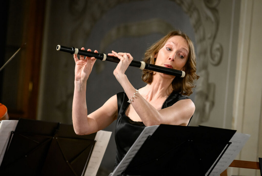 Z hlediska uspořádání programu zaujala rovněž provázanost zpěvních čísel s instrumentálními, které zde měly také své významné slovo. Kromě úvodní předehry Johanna Bernharda Bacha jsme vyslechli též krátkou chorální předehru Von Himmel kam der Engel Schaar, která elegantně vplynula do zmíněného recitativu, a také rozsáhlou Suitu h moll, BWV 1067. Při ní naopak zářila Jana Semerádová v roli sólové flétny a posluchači si znovu mohli potvrdit svůj dojem z předchozích koncertů, tedy že hraní Jany Semerádové je natolik přesvědčivé, že divák ani nepostřehne, jak obtížné předkládané skladby jsou. I tím nejhustším melodickým vyšíváním nás provází s naprostou lehkostí a samozřejmostí, očividným zápalem a láskou ke své profesi. Podobný popis je však příznačný i pro zbytek souboru: všichni hráči jdou do hraní naplno, nikdo nehraje napůl a strhávají obrovskou lavinu energie, ať už při virtuózních momentech (významného hraní si užila i Lenka Torgersen, která opět prokázala svou výraznou technickou zdatnost) či teskném „povalování se“ v harmoniích pozdního baroka. Soubor si dokáže společně užít a vyzdvihnout táhlé disonance i naprosto přesně a s jistotou společně tepat při běhavých unisonech. Zmiňovat pouze sehranost a vzájemné naladění souboru by tedy bylo zcela povrchní, protože, jak ukázalo při pondělním koncertu, Collegium Marianum dokáže daleko víc. Je schopné navodit momenty, kdy naskakuje husí kůže (a pravděpodobně naskakuje i Janě Semerádové, protože přesně při těchto chvílích, kterých za koncert není zrovna málo, se vždy zálibně usměje) a dokáže posluchači přinést nejen libozvučný požitek z hudby, ale hudbou zasáhnout až v nitru.