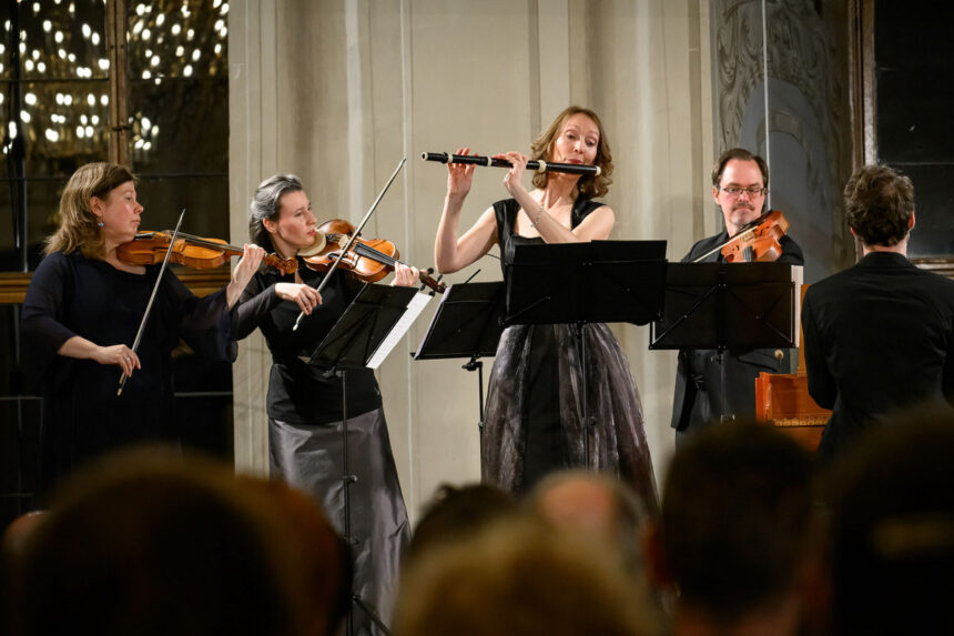 Z hlediska uspořádání programu zaujala rovněž provázanost zpěvních čísel s instrumentálními, které zde měly také své významné slovo. Kromě úvodní předehry Johanna Bernharda Bacha jsme vyslechli též krátkou chorální předehru Von Himmel kam der Engel Schaar, která elegantně vplynula do zmíněného recitativu, a také rozsáhlou Suitu h moll, BWV 1067. Při ní naopak zářila Jana Semerádová v roli sólové flétny a posluchači si znovu mohli potvrdit svůj dojem z předchozích koncertů, tedy že hraní Jany Semerádové je natolik přesvědčivé, že divák ani nepostřehne, jak obtížné předkládané skladby jsou. I tím nejhustším melodickým vyšíváním nás provází s naprostou lehkostí a samozřejmostí, očividným zápalem a láskou ke své profesi. Podobný popis je však příznačný i pro zbytek souboru: všichni hráči jdou do hraní naplno, nikdo nehraje napůl a strhávají obrovskou lavinu energie, ať už při virtuózních momentech (významného hraní si užila i Lenka Torgersen, která opět prokázala svou výraznou technickou zdatnost) či teskném „povalování se“ v harmoniích pozdního baroka. Soubor si dokáže společně užít a vyzdvihnout táhlé disonance i naprosto přesně a s jistotou společně tepat při běhavých unisonech. Zmiňovat pouze sehranost a vzájemné naladění souboru by tedy bylo zcela povrchní, protože, jak ukázalo při pondělním koncertu, Collegium Marianum dokáže daleko víc. Je schopné navodit momenty, kdy naskakuje husí kůže (a pravděpodobně naskakuje i Janě Semerádové, protože přesně při těchto chvílích, kterých za koncert není zrovna málo, se vždy zálibně usměje) a dokáže posluchači přinést nejen libozvučný požitek z hudby, ale hudbou zasáhnout až v nitru.