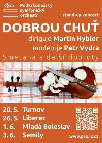 Dobrou chuť – to je podtitul komponovaného celovečerního programu, který nabídne Podkrkonošský symfonický orchestr pod taktovkou dirigenta a skladatele Martina Hyblera. Hlavním hostem bude herec, komik a moderátor Petr Vydra. Projekt stojí na pomezí klasického koncertu a klubového vystoupení stand-up komika, to vše na téma jídlo, pití a gastronomie. Koncerty se konají v sobotu 20. května v Turnově, v pátek 26. května v Liberci, ve čtvrtek 1. června v Mladé Boleslavi a v sobotu 3. června v Semilech.