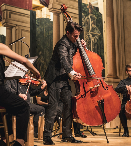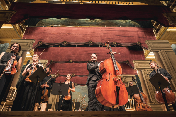 Ve druhé polovině, kterou korunovaly Stivínovy dvě vlastní skladby, zvuk jeho kontrabasu jako by kulminoval. I díky tomu, že do nich včlenil virtuózní sóla, při kterých publikum ani nedýchalo. „První skladbou byla Svatý Václave s podtitulem Kanción pro kontrabas a orchestr. Napsal jsem ji minulý rok pro svůj orchestr Collegium Stivinum a premiérovali jsme ji na Hudebním festivalu F. L. Věka v Dobrušce. Je to skladba na motiv Svatováclavského chorálu a mísí se v ní inspirace mnoha staletí. Něco takového mi v kontrabasovém repertoáru chybělo a toužil jsem to napsat.“ A co závěrečná skladba? „Valtickou fantazii s podtitulem Hommage à Johannes Matthias Sperger jsem složil speciálně pro Lednicko-valtický hudební festival. A pro Barocco sempre giovane ve složení posíleném o flétny, hoboje, horny a harfu. Skladba je pro mě popisem Spergerova života. Harfa představuje maminku, flétna otce, horny přátele, smyčce osud a kontrabas lásku. Při této představě se mi psala téměř sama.“