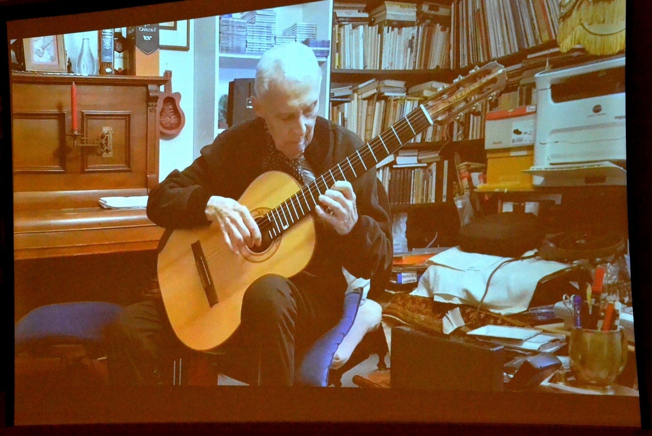 Během sobotního vzpomínání sice jeho žáci sami nezahráli, zato našli několik videozáznamů, na kterých hraje a rozšafně mluví Jiří Jirmal. Dokumentují jeho poslední roky, kdy už byl určitě nejstarším hrajícím kytaristou na světě, jak sám tvrdil. A dodával k tomu, že i nejstarším chodícím kytaristou. Když se jeho život uzavřel, bylo mu čtyřiadevadesát.