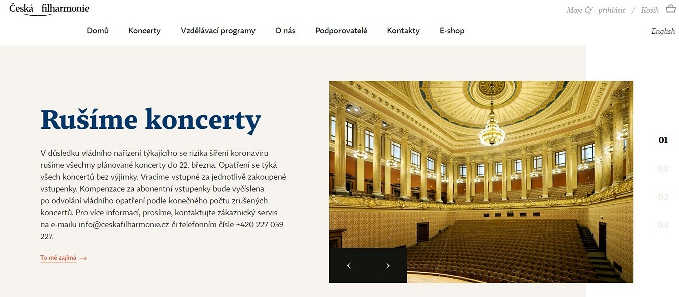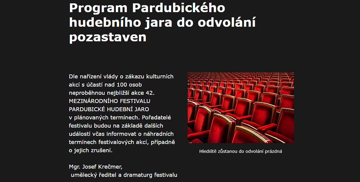 Pandemie způsobená takzvaným novým typem koronaviru má už nyní vedle těch zdravotních i důsledky ekonomické a existenční. Ve všech odvětvích, tedy i v kultuře. Média samozřejmě zaznamenávají ze zrušených nebo odložených událostí hlavně takové, kterých si všímají miliony lidí po celém světě: ztráty vznikající filmovým producentům oslabením asijského trhu, mezery po neuskutečněných veletrzích nebo koncertních megaturné rockových kapel, případně smutek z nutnosti čekat na nového Jamese Bonda až do podzimu. Málokoho dojmou zprávy ze světa klasické hudby. Nemají globální rozměr, jsou to jen příběhy hudebníků, kteří najednou nemají co dělat a proč cvičit.