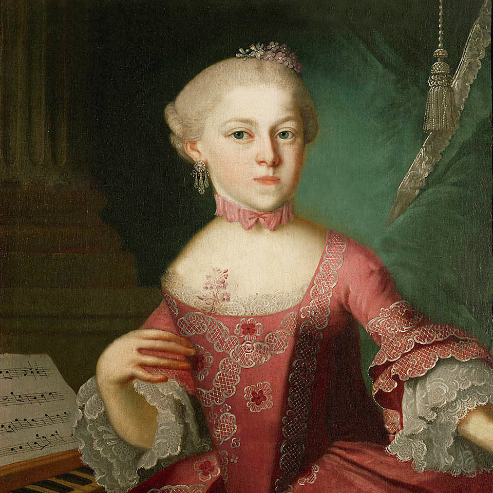 Podobně tomu ostatně bylo i u Mozartovy sestry: o pět let starší Maria Anna Walburga Ignatia, zkráceně Mariana, byla v rodině známá jako Nannerl. Něco jako Nanynka. Její jméno je přítomno v podtitulu Mozartova Divertimenta D dur – „Nannerl Septet“. Na poslech příjemnou hudbu nepříliš závažné mnohadílné skladby, určené pro domácí užití, zkomponoval jako dvacetiletý k jejím jmeninám. Sestra určitě byla, stejně jako on, zázračné dítě, avšak hudební kariéra jí skončila v osmnácti. Provdala se za bohatého státního úředníka, přestěhovala se do městečka Sankt Gilgen nedaleko Salcburku, měla tři děti a starala se i o děti svého předtím ovdovělého manžela.