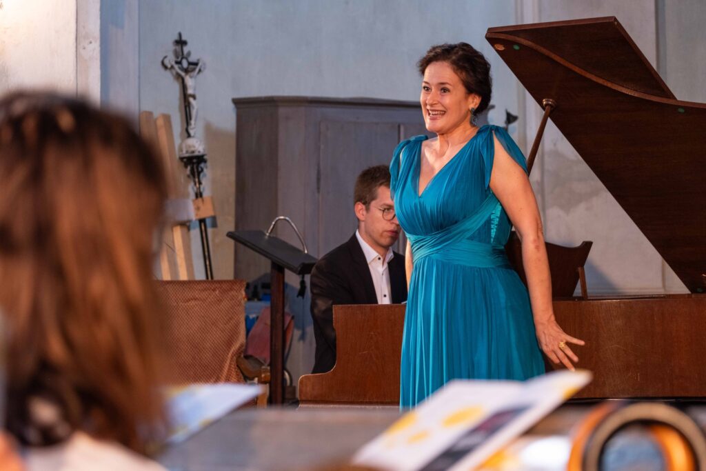 Úvodní skladbou koncertu v božanovském kostele sv. Máří Magdaleny byla píseň Abendempfindung od Wolfganga Amadea Mozarta, známá svou podivuhodnou melancholickou atmosférou. Vznikla v roce 1787 a odráží vzpomínky na uplynulý čas. V interpretaci Simony Šaturové skladba zazněla s potřebnou emocionalitou, i když byla po chvíli přerušena kvůli indispozici. „Druhý pokus“ se však vyznačoval ještě větší intenzitou, pěvkyně znamenitě prezentovala své umění vkusného hereckého ztvárnění, které spolu s výbornou dikcí dodaly skladbě na hloubce a přesvědčivosti. Výkon pěvkyně doplnil Marek Kozák jemným a vytříbeným úhozem, kterým interpretaci podtrhl a dodal jí na emocionálním náboji. Simona Šaturová v této písni potvrdila, že právem je vyhledávanou interpretkou mozartovského repertoáru.
