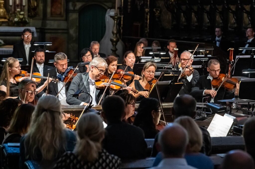 V úvodu koncertu zazněla příhodně vybraná Ouvertüre z Orchestrální suity D dur, BWV 1068 od Johanna Sebastiana Bacha, která hned na začátku podtrhla slavnostní naladění závěrečného večera festivalu. Následně zazněly i ostatní části opusu. Široce známá, až ikonická druhá věta Air je velmi často citována samostatně, a tak zůstávají ostatní věty (1. Ouverture, 3. Gavotte I – Gavotte II, 4. Burée a 5. Gigue) trochu neprávem, upozaděny. Nyní tak mělo publikum možnost vyslechnout druhou větu v kontextu celé Bachovy suity. Orchestr hrál od začátku s lehkostí, ale také s plným soustředěním, což bylo potřeba, neboť při zmíněném usazení v nabízeném prostoru hráči nemohli tak dobře sledovat souzvuk celého orchestru sluchem a bylo zapotřebí více spoléhat na vedení dirigenta. Kaspar Zehnder ale gesty komunikovat umí a hráče vedl s jistotou a přehledem.