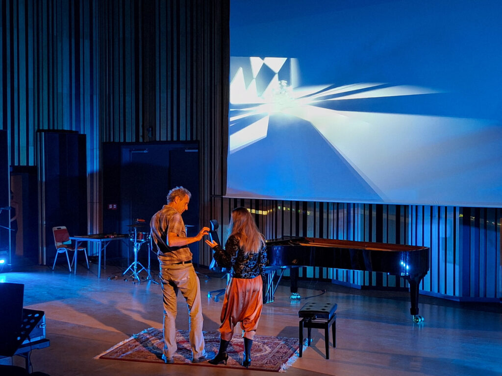 Co znamená být spolu – a přitom odděleně? Tuto otázku a mnoho dalších nechal vibrovat v prostorách Koncertního sálu Fakulty umění Ostravské univerzity multimediální projekt Leaving Room dne 30. října v rámci 51. ročníku Hudební současnosti. Autoři a zároveň interpreti Dimitris Andrikopoulos, Hana Hána, Ivo Medek, Sára Medková a Vít Zouhar vytvořili spolu s režisérem Roccem, zvukařem a osvětlovačem Jiřím Pejchou a videoartistou Lukášem Medkem hodinové hudebně-vizuální prostředí, v němž se realita proměňovala v digitální ozvěnu. Výsledkem byla meditace o přítomnosti, proměně a odcházení – i o tom, co z člověka zůstává, když se jeho obraz přenese do světel a dat.