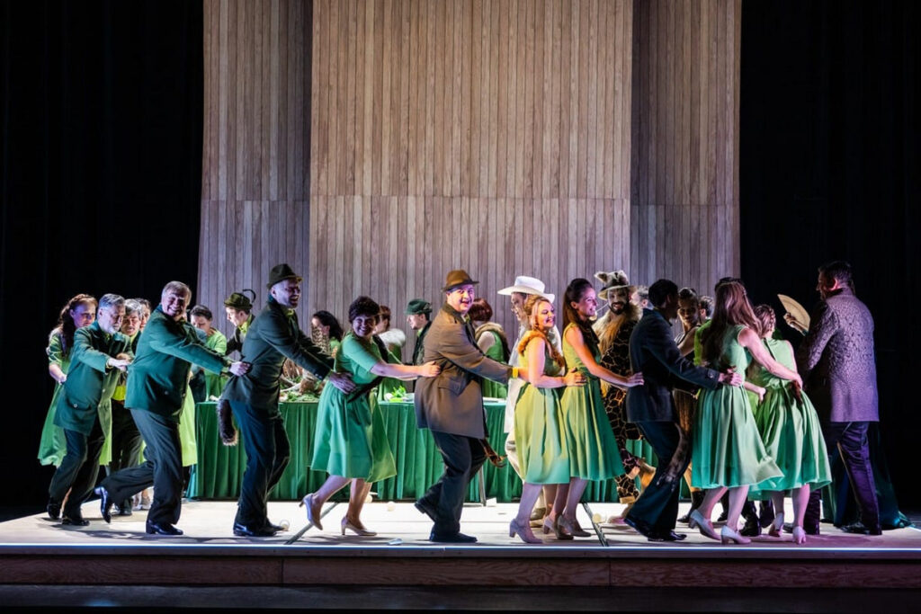 Jevištní akce sboru byly redukovány na pouhou dekoraci k jednání protagonistů, které bylo situováno na zmíněné pódium. Za tímto řešením lze vysledovat záměr soustředit se pouze na hlavní dějové situace, nelze se ale také ubránit podezření, že se režisér k tomuto řešení uchýlil proto, že si prostě se sborem neví rady (sborová a taneční folklorní scéna v prvním obraze byla škrtnuta). Nicméně téměř koncertní postavení sboru bylo ku prospěchu hudebnímu provedení, sbor zpíval intonačně čistě a vyrovnaně ve všech hlasových skupinách (sbormistr Tadeáš Tulach).