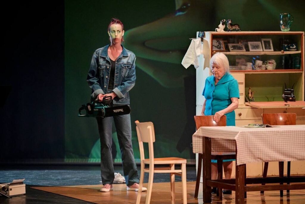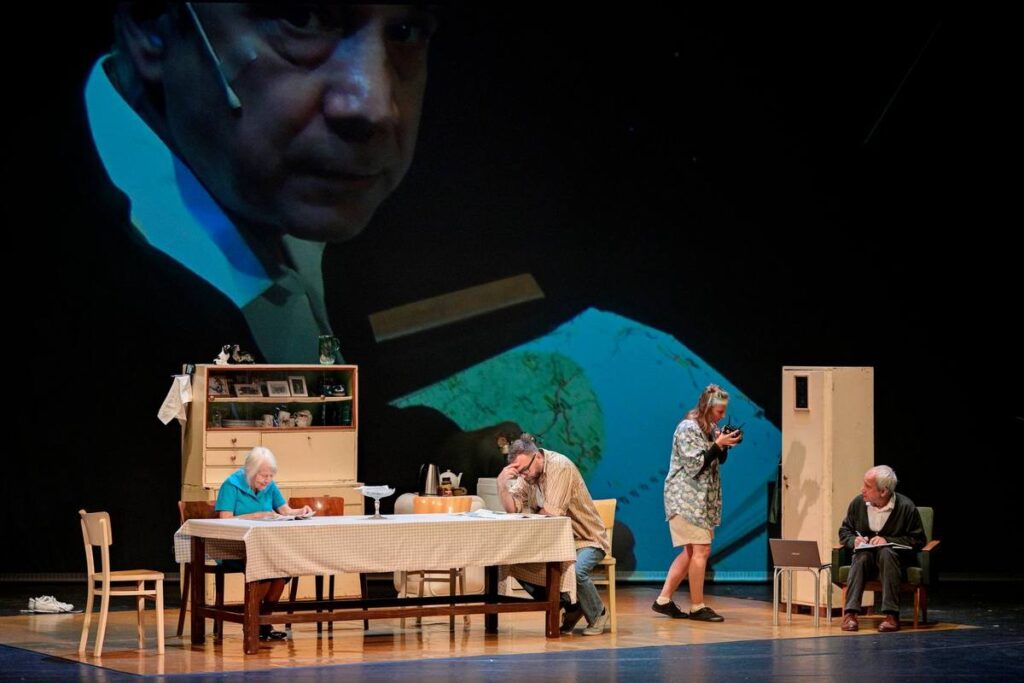 Postavu dědy, který spáchá teroristický čin, ztvárnil přední ostravský herec Vladislav Georgiev. Jeho pokorný výkon si zaslouží respekt, jelikož odpovídá realitě. Georgiev se vyhnul pokušení rozehrát postavu dramaticky vzletným způsobem a vystavěl své herectví úspornými a přesnými gesty, obličejovou mimikou a řečí těla. Po celou dobu působí jako introvertní a neškodný staroušek, který si něco kutí s dětskou železnicí a mapou českých drah. Znamenitým způsobem vstoupila do role babičky i Viera Pavlíková, která naplnila matriarchální model české rodiny půvabnými výroky typu: „Já se snad zblázním, na všechno musím myslet já!“ Jedinou zpívanou roli, která respektuje operní idiom, ztvárnila bravurně mezzosopranistka Alžběta Vomáčková paní Váňovou, kterou nezaskočila ani motorová pila, s níž se na jevišti producíruje. Další členy rodiny sehráli Zbygniew Kalina, Danny Takieddin a Anežka Matoušková. Režie v rovině vyprávění našla dokonce prostor pro, řekněme, jisté anomálie, které v dobrém slova smyslu evokují filmovou poetiku Davida Lynche a hledají za reálnými procesy jejich podprahové analogie: Jedná se o mrazivou scénku s tubistou, který uprostřed kakofonní improvizační vřavy opustí své místo a doráží svým nástrojem na rodinného příslušníka, za povšimnutí stojí také znepokojivé mlčení Váňové, která si přečte v notebooku dědy něco velmi podivného.