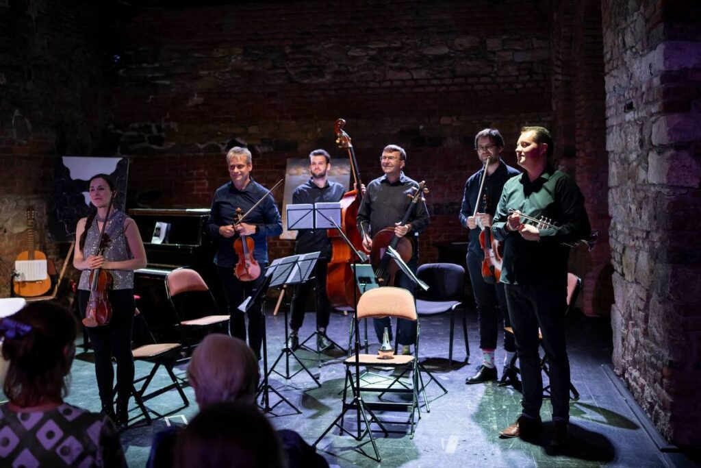 Lví podíl na úspěšném průběhu koncertu – na jeho interpretační složce – mělo kvartetní seskupení ve složení Barbora Kolářová, Jan Adam (housle), Michal Sedláček (viola) a Lukáš Pospíšil (violoncello). Svoje kvality prokázalo nejen stylově čistým provedením smyčcového kvartetu Jana Klusáka v úvodu večera, ale i v kvalitních realizacích kvartetních partů ve skladbách Miloše Orsona Štědroně, Martina Hyblera a Jana Kučery. Pevný basový fundament skupině smyčcových nástrojů dodal kontrabasista Jakub Amcha (Štědroň, Hybler, Kučera). Technicky precizní, s komorní jemností podaný sólistický výkon ve Štědroňově concertinu podal trumpetista Walter Hofbauer. Obdivuhodná byla zejména jeho práce se sordinou, tedy s témbrovou složkou. Téměř realisticky a s příslušnou dávkou humoru zapůsobil sportovně koncipovaný dialog houslí a fagotu (Barbora Kolářová a Matěj Rothbauer) v první ze dvou Hyblerových kompozic. Interpreti zde upoutali pozornost nejen kvalitou své hry, ale i dobrým zvládnutím mluveného slova. Do interpretace závěrečné, skladby Jana Kučery se zapojil nejen sám autor (klavír), ale i další z přítomných skladatelů Pert Wajsar (kytara). K monumentalitě vyznění Kučerova díla přispěli i další přítomní koncertní umělci (kontrabasista Jakub Amcha a trumpetista Walter Hofbauer). Zvláštní připomenutí a pochvalu si zaslouží vokalistka Veronika Vítová, která spolu s autorem skladby Petrem Wajsarem partnersky inscenovala Karetní hru pro dva vokály jako jemnou, náznakovou hereckou akci.