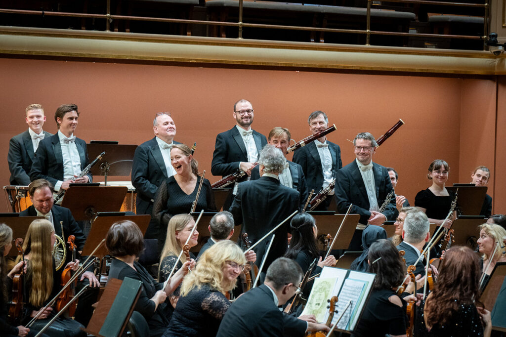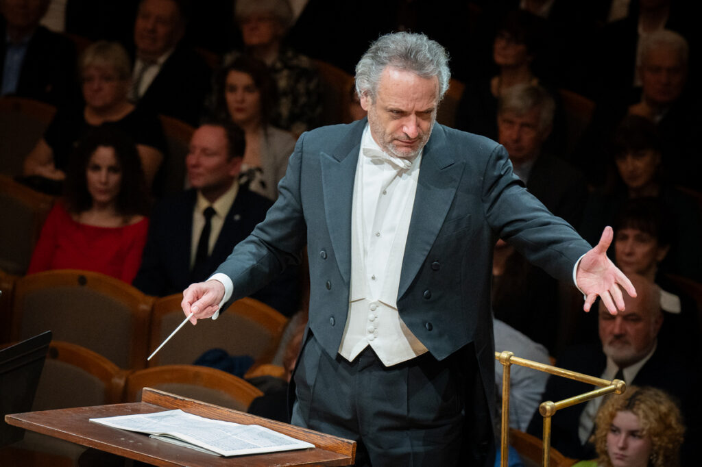 Straussovy Metamorfózy – spekuluje se, proč zrovna Metamorfózy – vystupující umělce představily v jiném světle. Dílo skladatele v pozdním věku se stalo „symbolem zavržení války a lidské surovosti“, jak praví pěkně vypracovaná koncertní brožurka. V úvodní fázi kompozice vzdáleně připomíná Šostakovičovu Komorní symfonii, celkově mi pak tato „studie pro 23 smyčců“ také evokuje Koncert pro sbor letos jubilujícího Alfreda Schnittkeho s tím, že místo lidí „zpívají“ nástroje, přičemž každému je přidělena jedinečná úloha. Na první straně partitury tak vidíme part houslí „rozprsklý“ do dokonce deseti různých notových osnov a zkrátka každý hráč má svůj řádek. Jednověté, téměř půlhodinové dílo je originalitou bezesporu pozoruhodné samo o sobě, zároveň je však značnou výzvou zejména pro dirigenta. Naprosto esenciální je zde nutnost pečlivého rozvržení dramaturgie kompozice a zužitkování veškerého dostupného dynamického rozsahu. Dirigentský projev dle mého musí respektovat přítomnou širokodechost opusu. V tomto bodě jsem vnímal určitý problém, kdy dirigentovo poctivé taktování sice poskytlo rytmickou oporu hráčům, zároveň však vizuálním účinkem rušilo hudební tok. Zopakujme si: jedna věta, skoro půl hodiny, pouze smyčce – tady je nutné rozprostřít posluchačský vjem do maximální šíře, neustálé poctivé „na čtyři“ nežádoucím strhává pozornost na detaily a odvádí od celku. Divákův vjem musí být fragmentován do co nejrozsáhlejších dílčích úseků. Vhodné by mi zde přišlo generální alla breve, ale známe také dirigenty, kteří si dovolí taktování v některých pasážích a na určitý čas úplně vynechat. Lze tak činit v místech neměnného a motoričtějšího metra a v této souvislosti se mi vybaví například legendární Nikolaus Harnoncourt. Straussovy Metamorfózy vyžadují zužitkovat každou výrazovou možnost, být vynalézavý v artikulačním odstiňování a extrémní dynamiky k oběma pólům v tomto případě považuju za pouze základní přísadu úspěšného provedení. To nedělní jistě mělo punc výjimečnosti (posílený i jen faktem fyzického stání hráčů u pultů houslí a viol), skladatelovo pozdní dílo zaujalo skutečně hutným a propracovaným kontrapunktem (vyzdvihovaným dirigentem Langréem na předkoncertním setkání v Talichově salonku), často zvukově tajuplným zejména díky vnitřním hlasům sazby, operního autora poučně představilo zase v o něco jiném tvůrčím světle, celkově k úplnosti interpretace však přece jen něco chybělo. A možná to souviselo se zkouškovou dotací.