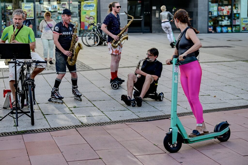 Dunami Ensemble se představí téhož dne dříve natřikrát na otevřeném prostranství piazzetty Národního divadla. K zhlédnutí bude Rozlučka se svobodou Františka Chaloupky, kdy sopránové party ztvární Jana Vondrů a Aneta Podracká Bendová, čtveřice saxofonů bude v rukou Antonína Mühlhansla, Radima Hanouska, Pavla Zlámala a Pavla Šabackého. „Jet stále vpřed, a pokud možno rychleji. Nezastavit se. Pohybovat se, ale nehýbat. Zrozeny během jízdy, od narození přisáté k akumulátoru pohybu. Apoštolky techno-optimismu, kněžky akcelerace oslavují svůj život na koloběžkách a šíří neutuchající víru v techno-optimismus,“ klade záhadná hesla umělecký soubor v oficiálním materiálu. Pouliční akce, která reaguje na aktuální společenské dění, se snaží přiblížit žánr opery kolemjdoucím, kteří mu třeba přímo neholdují. Ti se stávají součástí 12minutového představení. Opus Františka Chaloupky řeší téma dobrovolné ztráty svobody díky technickému pokroku. Trojice uvedení se uskuteční v 15:00, 16:30 a 18:15.