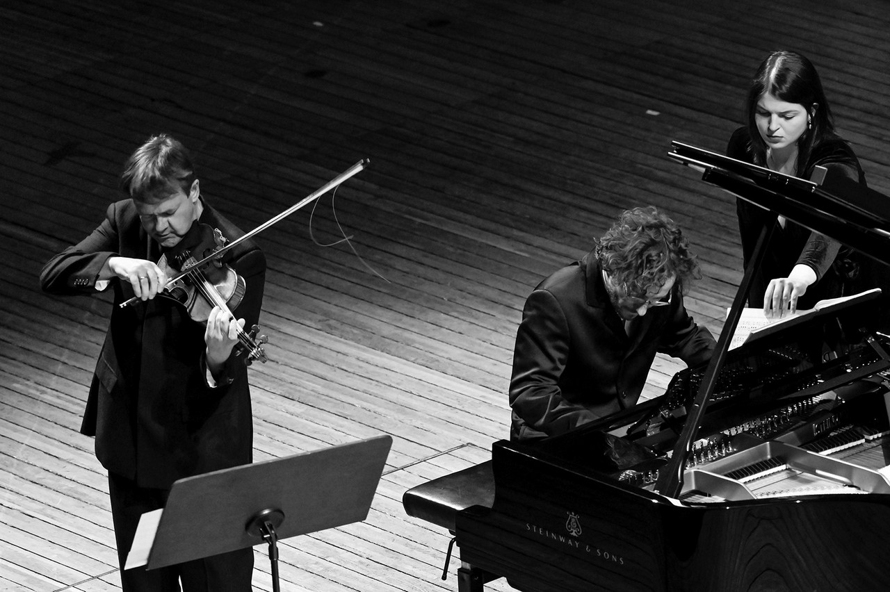 Jsou koncerty – a zejména komorní –, kdy od samotného začátku víte, že se odehraje něco výjimečného. Přihodilo se to i ten večer s prvními takty sonáty č. 8 G dur. Rozverná první věta s frázemi na milisekundu dokončenými, nevyostřenou akcentací houslí, kultivovaným jemným úhozem klavíristy byla příslibem věcí příštích. A ty se děly. V druhé, lyrické, romantické větě se hudebníci rozehráli cituplně, vřele, přitom ne sladkobolně, přeslazeně. Právě ta hranice mezi na odiv stavěnou virtuozitou a pokornou stylovou interpretací byla zřetelná po celý večer. Řekla bych, že čím větší uměřenost hráče, tím větší zážitek pro posluchače. U Zimmermanna vždy obdivuji jeho tónovou vyrovnanost, v této větě s jemným vibratem, Helmchen zase upoutal svou jemnou, křehkou, brilantní hrou a očividným souzněním s houslistou. Je známo, že Beethoven napsal tyto sonáty pro dva rovnocenné nástroje – klavír v nich nemá doprovodnou úlohu, ale je partnerem houslí – a interpretace Zimmermanna a Helmchena tento záměr naplnila.