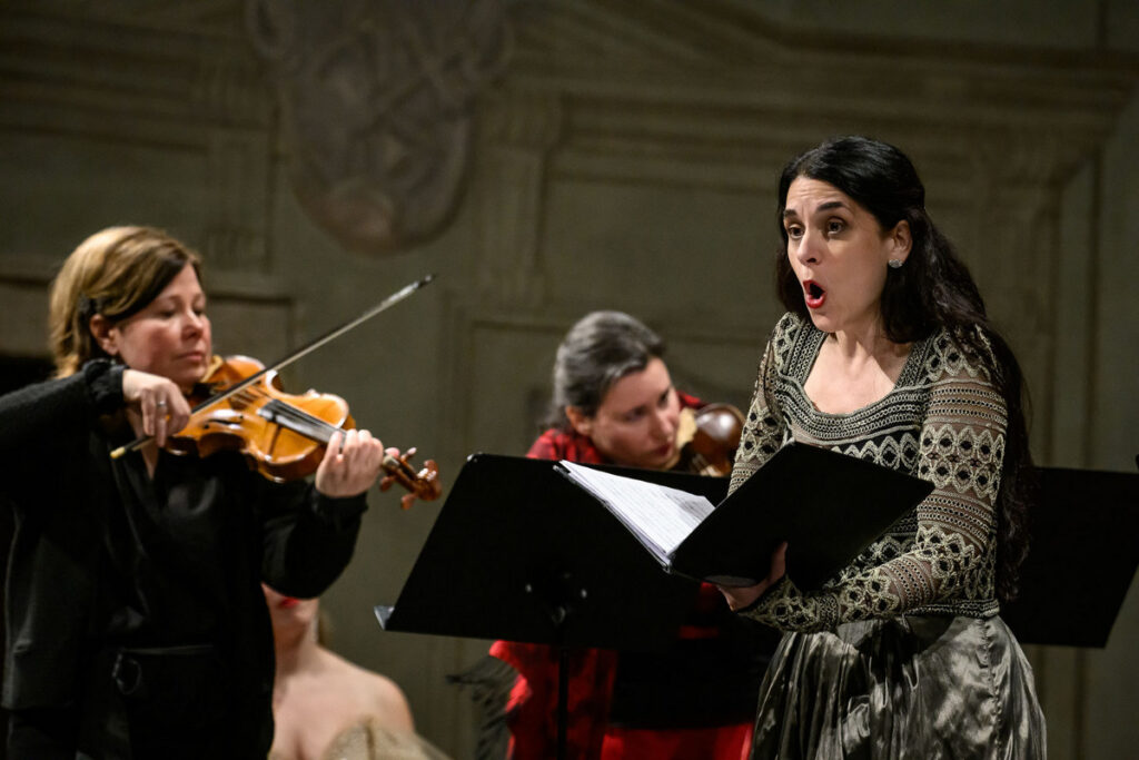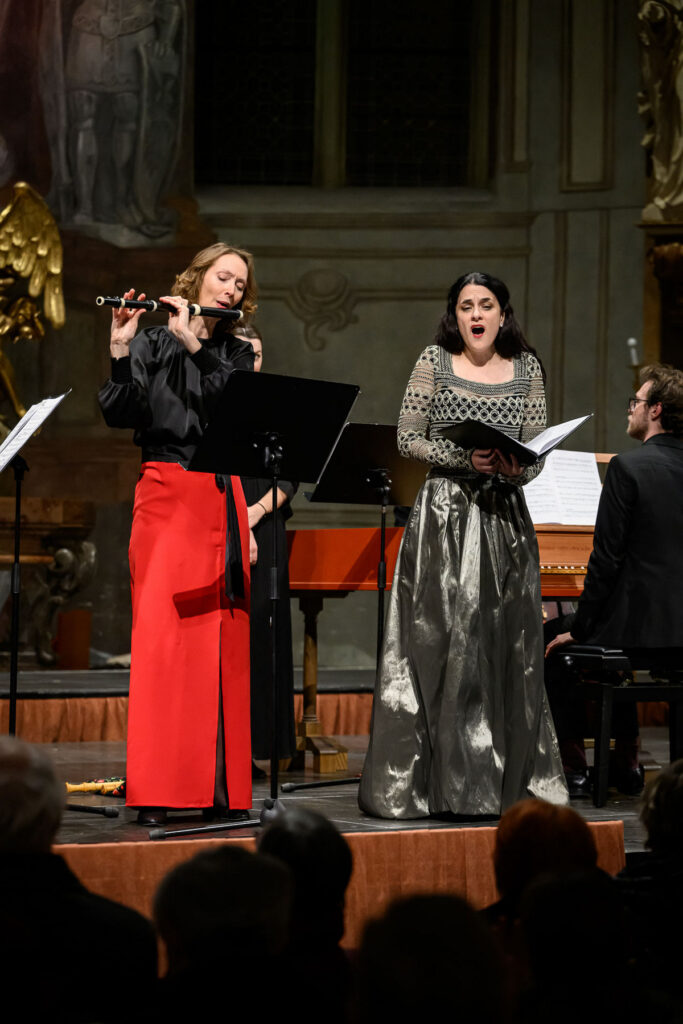 Energetická lavina pokračovala i po příchodu zpěváků. Alle selve, alle valli, alle grotte je píseň z vánoční kantáty La Tarantella Cristofora Caresany a, jak již název skladby napovídá, jedná se o temperamentní hudební smršť, ještě podpořenou pěveckou interpretací. Přestože Hana Blažíková začala svůj výkon poněkud nesměle, Pavla Radostová, která byla oslovena jako záskok za onemocnělou Terezu Zimkovou, ji záhy strhla do víru tarantelových rytmů. Její neutuchající entuziasmus mohl právě na tomto místě plně propuknout, přestože měl někdy divák pocit, že by některým vyšším tónům slušelo přece jen trochu více umírněnosti. Muži dostali více příležitostí v dalším sólovém vstupu, dvou áriích z oratoria Il trionfo del tempo e del disinganno Georga Friedricha Händela, které skládal při svém pobytu v Římě (– do programu tedy další související, ale zároveň přece jen trochu stylově odlišná kompozice). Velice sympatický projev se stylově odlehčeným hlasem měl v árii Nasce l’uomo, ma nasce bambino Marek Žihla, který zaskakoval za Ondřeje Holuba, následovaný kontratenoristou Vojtěchem Pelkou se zdárně zrajícím hlasem, který v da capu ukázal, že umí rozeznít i spodní hlasovou polohu.