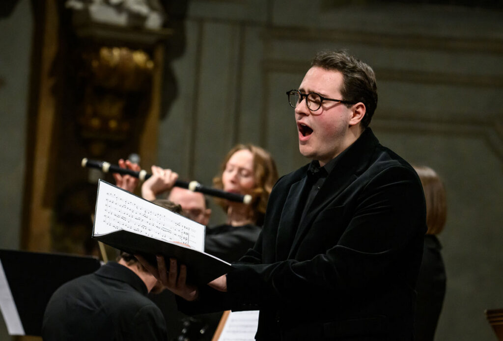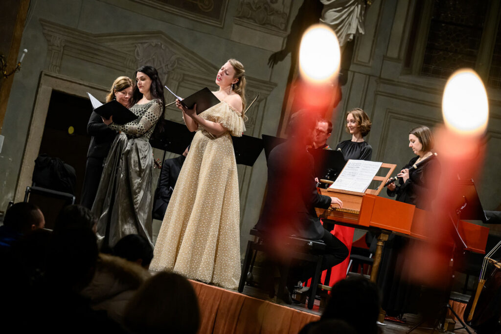 Pokud jsme u zmíněného Caresany registrovali, jak perfektně na sebe pěvci reagují a společně žijí zpívaným textem, při Scarlattiho kantátě jsme si tento aspekt mohli vychutnat naplno. Recitativy se díky sólistům staly živoucím organismem, ne pouze „vycpávkou“ mezi áriemi, a pěvci na sebe navazovali s neobvyklou elegancí. Konečně měl příležitost se plně sólisticky projevit i Tomáš Šelc, jehož příjemně zabarvený basbaryton s lehkostí zvládal (až na pár výjimek) veškeré nástrahy svého partu a jediným negativem se tak stala vizuální stránka věci, tedy přílišné zrakové lpění na notovém zápisu v rukou. Vojtěch Pelka zase zaujal srdceryvnou árií Lagrime amare, v níž ukázal, že je schopen nejen technicky vyrovnaného výkonu (opět až na problémy v nižší poloze), ale také přirozeného a věrného výrazu. S nižší polohou částečně bojoval i Marek Žihla, jinak však budil dojem, že svůj part nezpodobňuje pouze jako záskok, ale že ho má na repertoáru už řádku let. Podobný dojem musel mít posluchač i z Pavly Radostové, která celou kantátou prošla zcela suverénně, s nehraným nadšením, a ještě se při některých interakcích s „menšími“ a jemnějšími hlasy Hany Blažíkové či Vojtěcha Pelky, které měly tendenci dynamicky zanikat, snažila svůj průrazný soprán vést na vlně nižší intenzity. I Hana Blažíková však v dějovém průběhu nalezla výrazovou polohu, která pro ni byla (alespoň v aktuálním rozpoložení) pravděpodobně nejbližší a v árii Pargoletto in rozze fasce se její něžný projev příznačně pojil se sólovou flétnou Jany Semerádové.