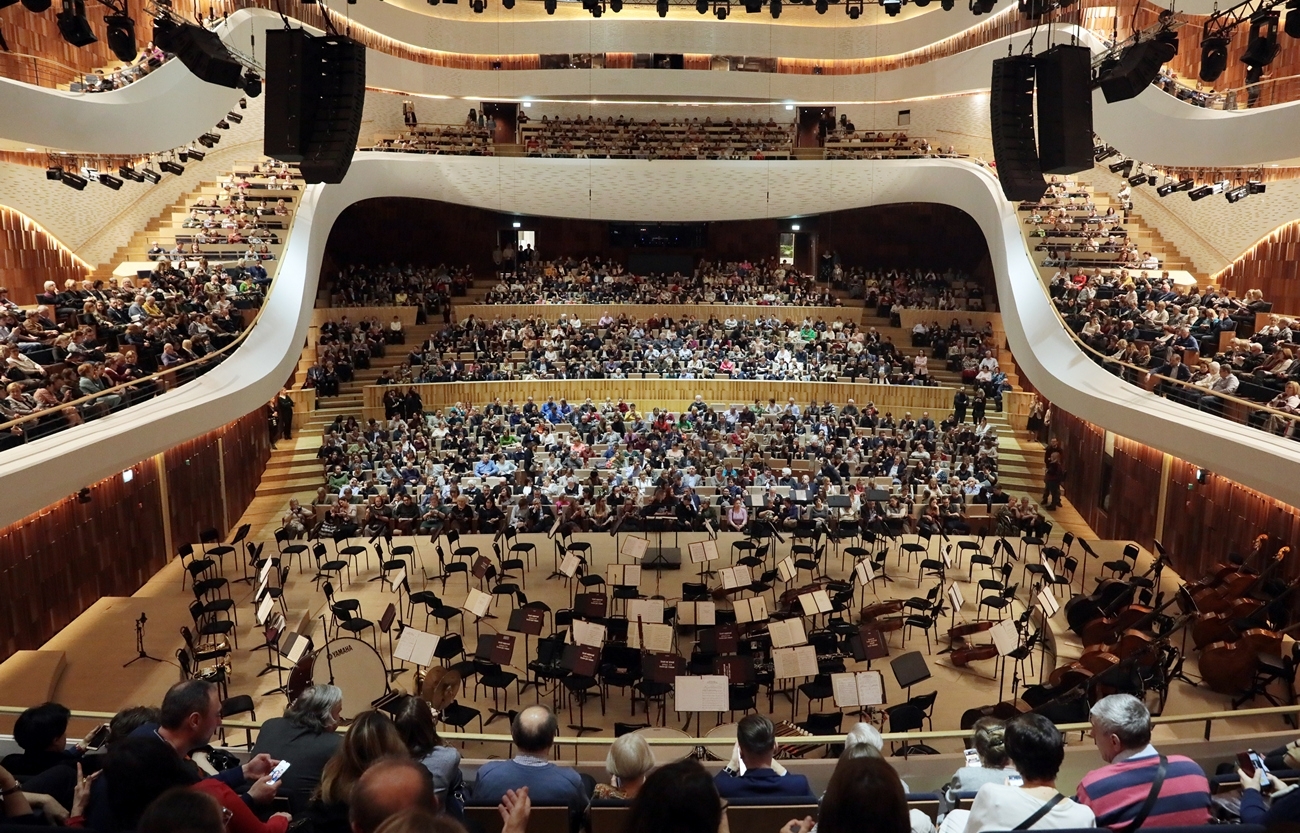Sál je už na pohled velmi elegantní a jeho akustické podmínky jsou opravdu výjimečné. Během koncertu se vám samozřejmě příležitost vyslechnout si provedení z několika různých míst obvykle nenaskytne, generální zkouška to však umožňuje; z hlediska posluchačského je prakticky jedno, zda sedíte těsně pod pódiem, v nejvyšší řadě, či ve střední části u stěny – zvuky se sálem nesou s nenucenou lehkostí, aniž by se slévaly. Polohovací možnosti sálu si však vybírají svou daň – každá řada sedadel je upevněna na jednom zakřiveném panelu. Jelikož se pod ní nenachází pevná konstrukce, nýbrž sada různých táhel a zdviží, stačí u jedné stěny dupnout a s posluchačem na druhé straně příslušného schodu se zatřese sedadlo. Stejně tak výhod elevace pódia si sbor mnoho neužil – rozmístění na pódiu vůči pěveckém tělesu není úplně fér. Zatímco orchestr se pohodlně rozprostřel po celém „přízemí“ i prvních dvou schodech, sbor se tísní z větší části na tom třetím. Pouze někteří pánové v basu a některé dámy v sopránu mohou na krajích postoupit o stupínek níže, v tom případě jim ale ve výhledu překážejí kontrabasy. Přestože se vedení sboru snaží nevhodné postavení nějak řešit, už to tak zůstane.