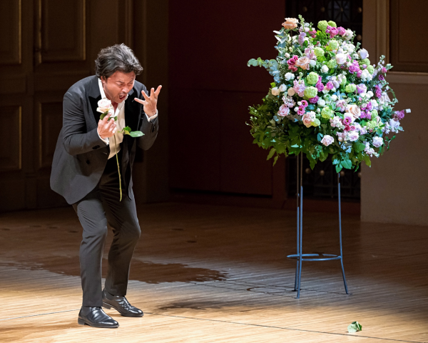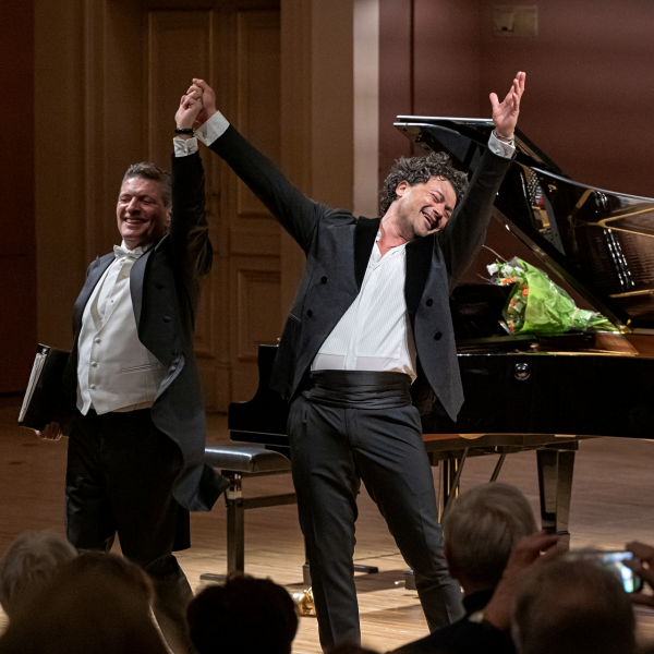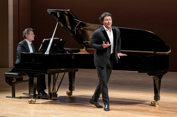 Protagonista večera, Vittorio Grigòlo (1977), jehož jméno a působnost jsou spojeny s předními operními scénami v Evropě i v zámoří, včetně proslulé newyorské Metropolitní opery, v Praze koncertoval už před osmi lety, kdy jej doprovázela Pražská komorní filharmonie. I tentokrát dramaturgie stavěla na osvědčeném repertoáru a jeho partnerem byl klavírista italsko-amerického původu Vincenzo Scalera. Grigòlo si publikum podmanil hned prvním číslem, Verdiho proslulou árií La donna e mobile, s až nadsazeným temperamentem a expresivitou. Hrdinsky posazenému a rezonujícímu hlasu sál málem nestačil. V následující Una furtiva lagrima z Nápoje lásky Gaetana Donizettiho zaujal překvapivým průběhem frází – dynamickou amplitudu před jejich závěry náhle tišil, aby ji vzápětí opět zesílil. Rodolfova árie Che gelida manina z Bohémy Giacoma Pucciniho poutala bezpečně podanou, navýsost ohebnou dynamikou i ve vysoko položených partiích, opět s efektem vyznívajícího ztišení, bylo znát, že tyto momenty publikum s pěvcem bezprostředně prožívá, stejně tak mocné dynamicko-melodické oblouky a kontrasty. Snad ještě patrnější naléhavostí výrazu byla vystupňována Recondita armonia z Toscy téhož skladatele. V souvislosti s hudebně i konkrétně interpretačně gradujícími pasážemi je třeba zmínit Grigòlův charakteristický a jeho výrazovému naturelu adekvátní teatrální pendant, daný místy až pantomimickým pohybem po celé ploše pódia. Výrazově, dynamicky i po posledně zmíněné stránce akcentovaným a vystupňovaným pěveckým výkonem v rozsáhlém úseku zahájeném Ah si, ben dite … z Verdiho Korsára dramaticky vrcholila první polovina večera.