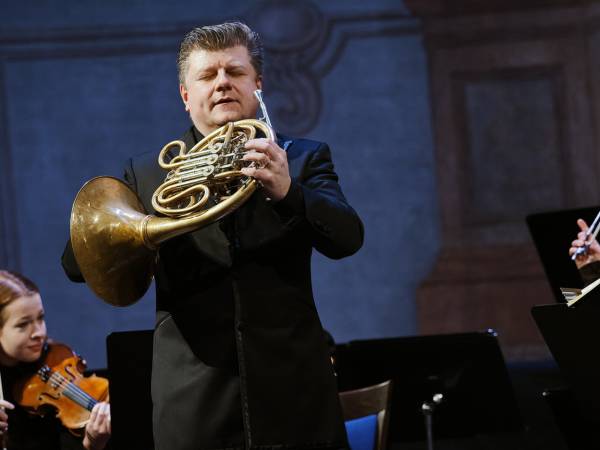V dramaturgicky výborně sestaveném večeru se v druhé skladbě představil Radek Baborák i jako hráč na lesní roh. Písně beze slov Felixe Mendelssohna-Bartholdyho patří k tomu nejcitovějšímu, nejromantičtějšímu v hudební literatuře. Baborák vybral čtyři z nich Andante espressivo – Allegro non troppo – Adagio – Presto v instrumentaci Paula Angerera pro altový pozoun. Říká-li se, a bez nadsázky, že Baborák zahraje bezpečně i to, s čím se jiní lopotí, pak v Angererových úpravách Mendelssohnových písní to potvrdil. V láskou prosyceném Andante hrály smyčce půvabně lehce, zvuk horny byl jemný, krásně artikulovaný. Jak kontrastně pak vyznělo Allegro non troppo připomínající uherský tanec, s temperamentně hrajícím orchestrem a sólistou, který si jakoby lehce jen pohrával s partem horny. Ten jemně sametově zabarvený tón je pro Radka Baboráka typický, jak ostatně vyniklo v následujícím Andante, vyzněním trochu melancholičtějším. Kantilénu lesního rohu ozdobenou trylky, jisté a uchu lahodící výšky horny doplňovaly empatické smyčce v dokonalé souhře. Závěrečné hravé Presto bylo doslova lahůdkou pro milovníky lesního rohu. Ze všech fines zmiňuji jen, v rychlém tempu zahraná echa na jednom nástroji. Působilo to, jako by horna rozmlouvala sama se sebou. A orchestr složený z vynikajících hráčů oddaně svého uměleckého vedoucího následoval.