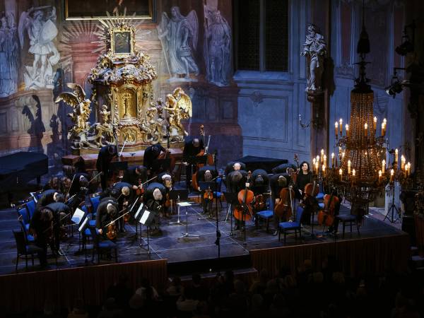 První z nich byla předehra Richarda Wagnera k opeře Tristan a Isolda v úpravě pro 23 smyčců Sebastiana Gürtlera, rakouského houslisty a skladatele, člena renomovaného souboru Philharmonix. Ten večer zazněla v této verzi ve světové premiéře, Gürtler pak předehru upravil ještě pro smyčcový orchestr a sextet. Jak wagnerovská partitura vyzněla v podání třiadvaceti smyčcových nástrojů? Nečekaně plně, v kongeniální Gürtlerově instrumentaci vynikly jednotlivé nástroje i dokonalý souzvuk celého orchestru. Úvodní téma violoncella (Ivan Vokáč) se v kostelním prostoru dotýkalo nekonečné lásky a opravdovosti, v souzvuku s violou (Karel Untermüller) se nesla prostorem hudební a zvuková nádhera. Z postupně se nabalujících dalších nástrojů jako by neslyšitelně, bez jakéhokoli rušivého švu, ostřejšího nástupu se zvolna vynořovala gradace plná napětí a vášně. V postupném zklidňování vynikly housle koncertního mistra Adama Nováka v neskonale něžném závěru. Už při této ouvertuře koncertu bylo zřejmé, jak posvěceným dirigentem Radek Baborák je. Srozumitelně odkryl strukturu skladby a vystavěl ji s citem pro kontrast, gradaci, jemné i plné plochy.