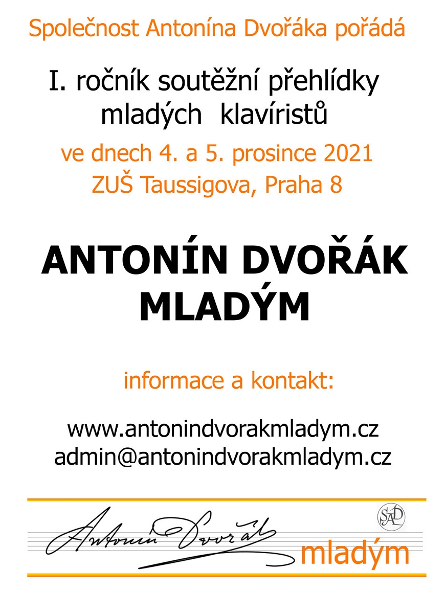 Společnost Antonína Dvořáka se k výročí 180 let od skladatelova narození rozhodla uspořádat první ročník soutěže Antonín Dvořák mladým, letos v oboru klavír. Bude se konat 4. a 5. prosince v koncertním sále ZUŠ Taussigova na Praze 8. Soutěž je otevřená všem amatérským klavíristům do jednadvaceti let, tedy dětem základních uměleckých škol nebo mladým muzikantům, kteří se nevzdělávají na profesionální úrovni. Prezidentkou soutěže je klavíristka Slávka Vernerová. Dále v porotě zasednou pianisté Igor Ardašev, Miroslav Sekera, Martin Hršel, Markéta Týmlová a tajemnice soutěže Nina Leovac. Klavírista Tomáš Víšek, interpret kompletního Dvořáka, který se celoživotně věnuje výuce mládeže, zpracoval doporučený repertoár s metodickým náhledem. Záštitu projektu udělil profesor Cyril Höschl. Přihlášky je možné podávat do konce října. Veškeré další informace jsou na webu https://www.antonindvorakmladym.cz/.