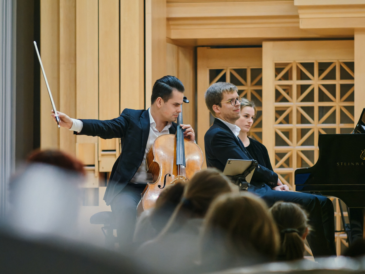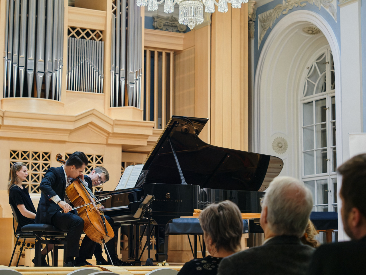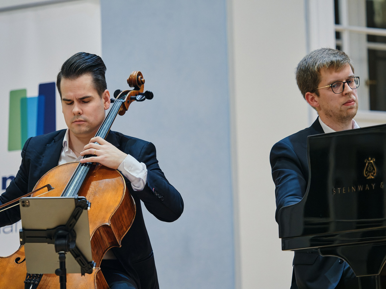 Sonáta pro violoncello a klavír č. 1 Alfreda Schnittkeho, o poznání virtuóznější kus, zazněla před pauzou. Volně atonální, témbrově zajímavá, snad trochu mnohomluvná skladba představila umělce zase v jiném světle. A pokud o jejich úrovni dosud snad někdo pochyboval, Schnittkeho sonátou pochybovat jistě přestal. Hráči předvedli výjimečnou technickou vyspělost, důmyslnou práci s časem a obdivuhodně jednotný rytmický cit a sehranost; scelenost díla už tak přítomnou kvalitní prací skladatele (a jím využitým principem attacca mezi jednotlivými větami) ještě podpořili promyšlenou tektonikou interpretace. Smyčec Václava Petra se definitivně prozpíval do nástroje i do prostoru a duo společně vtáhlo publikum do děje příběhu, za mě sdělnějšího než v případě úvodního Martinů. Nálada skladby místy hraničí s expresionismem, který snad maximálně vygradoval v závěru, kdy cellista hlubokou strunu C rozezvučel do neslýchané intenzity.