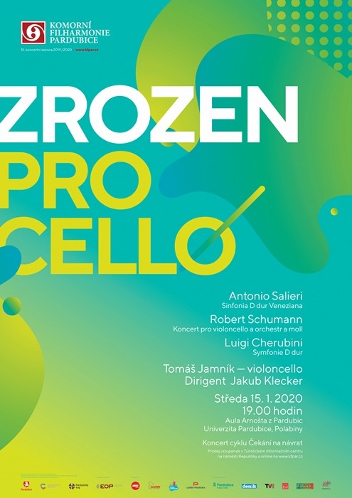 Koncert s názvem Zrozen pro cello uvede Komorní filharmonie Pardubice. Koná se ve středu 15. ledna od sedmi hodin v Aule Arnošta z Pardubic na Univerzitě Pardubice. Sólově se v Schumannově Koncertu pro violoncello a orchestr a moll představí Tomáš Jamník. Program kromě toho orámují dvě díla italských skladatelů, Sinfonia D dur Veneziana Antonia Salieriho a Symfonie D dur Luigi Cherubiniho. Diriguje Jakub Klecker. Koncert je součástí řady Čekání na návrat, ve které orchestr představuje především sólisty mladé a střední generace. V minulosti to byli například houslista Milan Ambroš, sopranistka Lucie Hájková, ve dvojroli dirigenta i sólisty Vojtěch Spurný, nebo barytonista Jiří Hájek. Následující koncert, který je na programu 26. února, se bude věnovat klarinetu, účinkuje Anna Paulová.