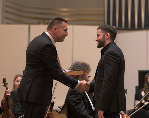 Beethovenov 1. klavírny koncert, juvenílny opus veľkého viedenského majstra, nepatrí medzi nosné skladby základného klavírneho repertoáru, no zároveň interpretovi poskytuje dostatok možností na plastickú prezentáciu svojich pianistických dispozícií: perlivú prstovú techniku, kantilénový lyrický ponor v pomalej časti a tlmený náznak výbušného dramatizmu v pasážových kaskádach záverečného Ronda. Robert Bílý všetky tieto sólistické danosti má a v súčasnosti ich úspešne rozvíja pod dozorom prominentného nemeckého klavírneho pedagóga Pavla Gililova, o čom sme sa mohli presvedčiť už minulý rok vo finálnom súťažnom kole Hummelovej súťaže, keď sugestívne predniesol náročný sólový part o poznanie zrelšieho Beethovenovho 4. klavírneho koncertu. Uznanie interpretačných kvalít mladého umelca našlo výraz aj vo vzácnej spoločenskej udalosti: na štvrtkovom koncerte guvernér Národnej banky Slovenska pán Peter Kažimír osobne odovzdal Robertovi Bílému, víťazovi 10. ročníka Medzinárodnej klavírnej súťaže Johanna Nepomuka Hummela, cenu guvernéra NBS, ktorú získal spolu s Cenou za najlepšiu interpretáciu klavírneho tria J. N. Hummela v roku 2021.