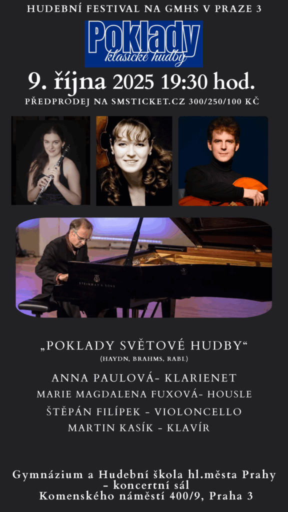 Čtyři výrazní čeští interpreti: Anna Paulová (klarinet), Marie Magdalena Fuxová (housle), Martin Kasík (klavír) a Štěpán Filípek (violoncello) se vydávají v říjnu na třídenní turné po České republice a Německu. Jeho zastávkami budou Praha, Wechterswinkel a Bad Brückenau. Program zahrnuje tria Haydna a Brahmse, ale také kvartet vzácně uváděného Waltera Rabla.