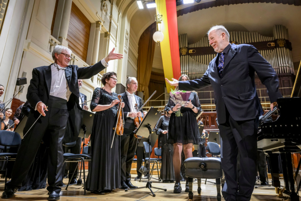 A teď již k samotnému zahajovacímu večeru. Před výborně naplněnou Smetanovou síní zazněla dvě nesmírně populární díla – Beethovenův Klavírní koncert č. 5 Es dur „Císařský“ a Čajkovského Pátá symfonie e moll. Američan Garrick Ohlsson, který letos oslaví své 75. narozeniny, je jedinečnou postavou klavírní interpretace. Vítěz Busoniho soutěže v Itálii (1966), Montrealské klavírní souěže (1968) a Chopinovy mezinárodní klavírní soutěže ve Varšavě v roce 1970 je stále v plném pracovním vytížení. Několik desetiletí trvající vzájemný vztah s Prahou a českou hudbou je přitom krásným příkladem oboustranného přátelství a značného respektu. Ohlsson mj. nahrál Dvořákův Klavírní koncert a Smetanovy České tance.
