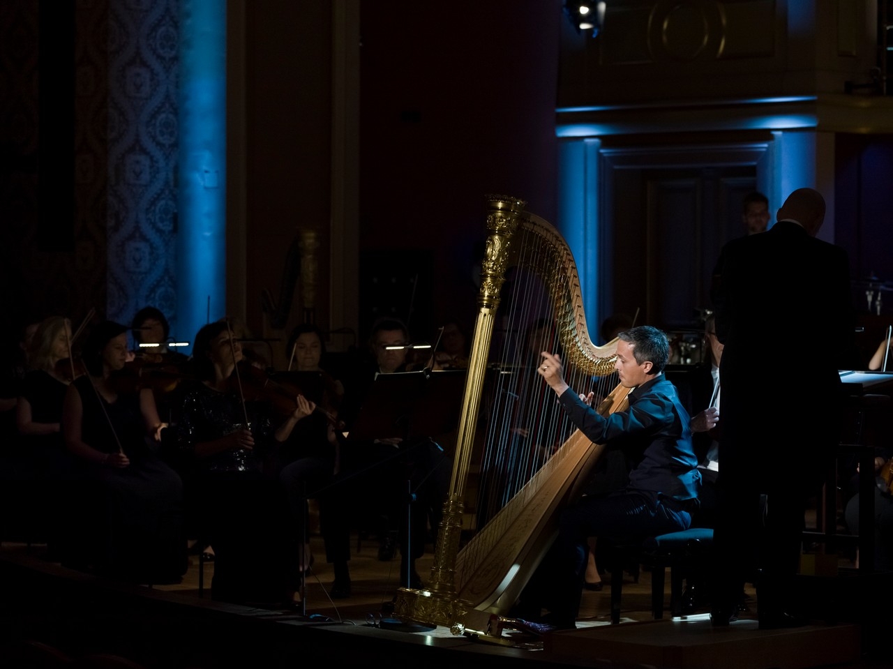 Třívětý koncert uvádí barevná, až impresionistická rytmická předehra s prvky jakéhosi industrialismu, exprese, později se projevují typické jižanské rytmy, které nejsou tak v samotném sólovém partu, který vytváří kontrast k okolnímu „rachotu“. Ceyssonův záběr je velmi pevný, ale umělec umí vytvořit velmi tichou rozjímavou náladu, na kterou orchestr navázal s absolutním soustředěním, a společně tak vytvořili skutečně mysteriózní dojem v závěru první části. Meditativně začíná i druhá věta koncertu. Baladické rozpoložení dialogu harfy a orchestru naruší temná hudba připomínající tu filmovou, známou z plíživých scén detektivek či thrillerů. Zvláštnímu neklidu podtrženému tichými souzvuky orchestru přispívá autorovo užívání disonancí, a to až do tichého závěru druhé věty. Ta třetí, Liberamente capriccioso – Vivace, je uvedena sólovou harfou, kde Ceysson opět potvrzuje, že je mistrem svého nástroje a doslova čaruje. Spektrum jeho výrazových možností je skoro nepochopitelné. Následuje rychlá část připomínající až muzikálové prvky bernsteinovského typu. V té orchestr obstál téměř skvěle, než se vymanil z jemného rytmického zakomíhání, ale to trvalo skutečně jen pár sekund. Poté už vše jelo živočišným samospádem, a to včetně velmi dobré práce bicí sekce. Závěr byl opravdu vygradován v tom nejlepším slova smyslu. Publikum bylo nadšené a vynutilo si od Ceyssona přídavek. Ten vpravdě na úrovni pozdravil české publikum svou vlastní úpravou árie o měsíčku z Dvořákovy opery Rusalka. Frázoval nádherně, jakoby zpíval. Krásné zakončení jeho vystoupení…