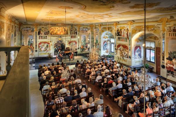 Dramaturgie českokrumlovského festivalu vystavěla koncert na jednoduché ukázce vývoje klavírního tria jako žánru od hudby pro pobavení po významnou formu v období vrcholného romantismu. Program koncertu tak nabídl tři vedle sebe stojící skladby, které velmi umožňují hráčům, a v případě Dvořákova tria zvlášť, rozvinout hráčskou suverenitu a interpretační nápaditost. Jako první zaznělo Mozartovo Trio C dur, K 548. Hlubších hudebních myšlenek prostá skladba byla určena snad spíše pro amatérské hudebníky než pro virtuózní kreace, jak naznačuje i použitá tónina C dur. I přesto lze skladbu vystavět jako zajímavý kus, například na jisté „šumařině“ jako hudbu pro pobavení, bez přílišné estetizace. Dvořákovo trio se vydalo spíše opačným směrem a snažilo se kompozici podat jako vyzrálou a procítěnou skladbu, plnou dynamických proměn. Podle mě výsledek moc nevyšel a vše vyznělo tak trochu na truc, bez hravosti a energie i zásadnějších vkladů jednotlivých hudebníků. Dokonce snad v částečné nejistotě a s nepatrnými zvukovými kazy.