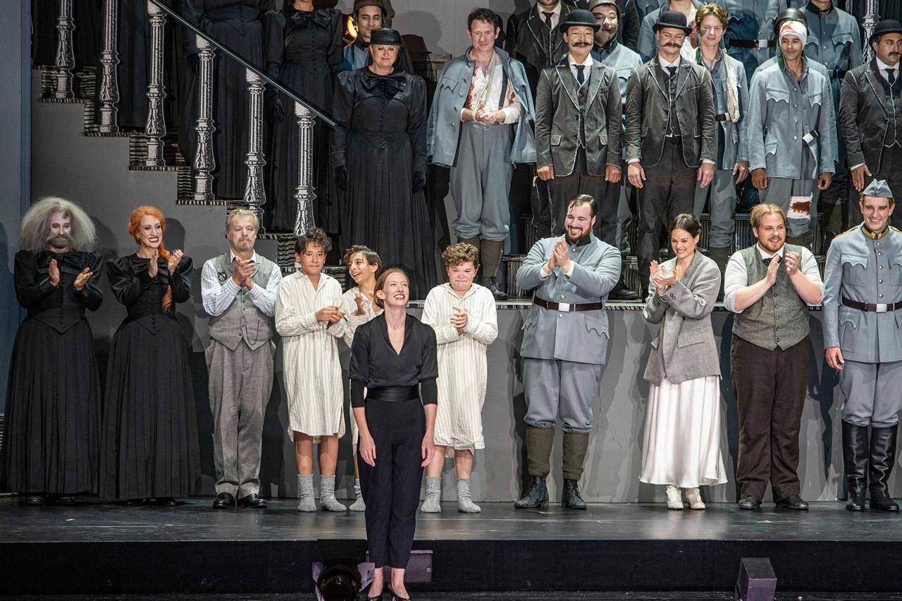 A zvolené pořadí oper působí ještě pozoruhodněji v současném salcburském provedení. Renomovaný německý režisér Christof Loy vzal evidentně v potaz jediný plánovaný spojovací prvek mezi operami, jímž měla být pěvkyně, která se měla zhostit všech tří hlavních ženských úloh. Jak jste nepochybně uhodli, tento úkol čekal právě na Asmik Grigorian… S ohledem na rozsah jednotlivých rolí se tak Gianni Schicchi s relativně malým lyrickým partem Lauretty ocitl na prvním místě. Dramaticky pojatá Giorgetta je jednou ze tří hlavních protagonistů děje Pláště, který se tak stal číslem dvě. A vrcholem večera se stala Sestra Angelika, kde význam hlavní hrdinky dokládá už sám název díla.