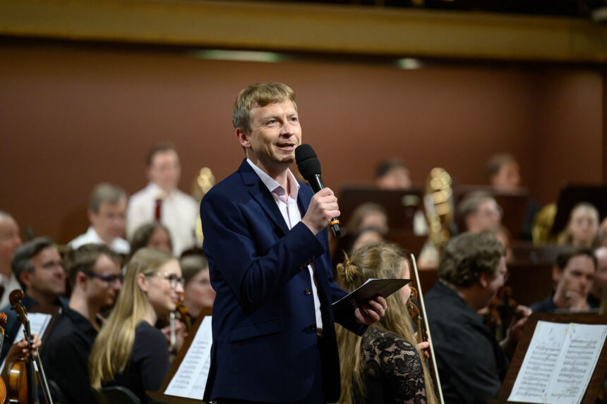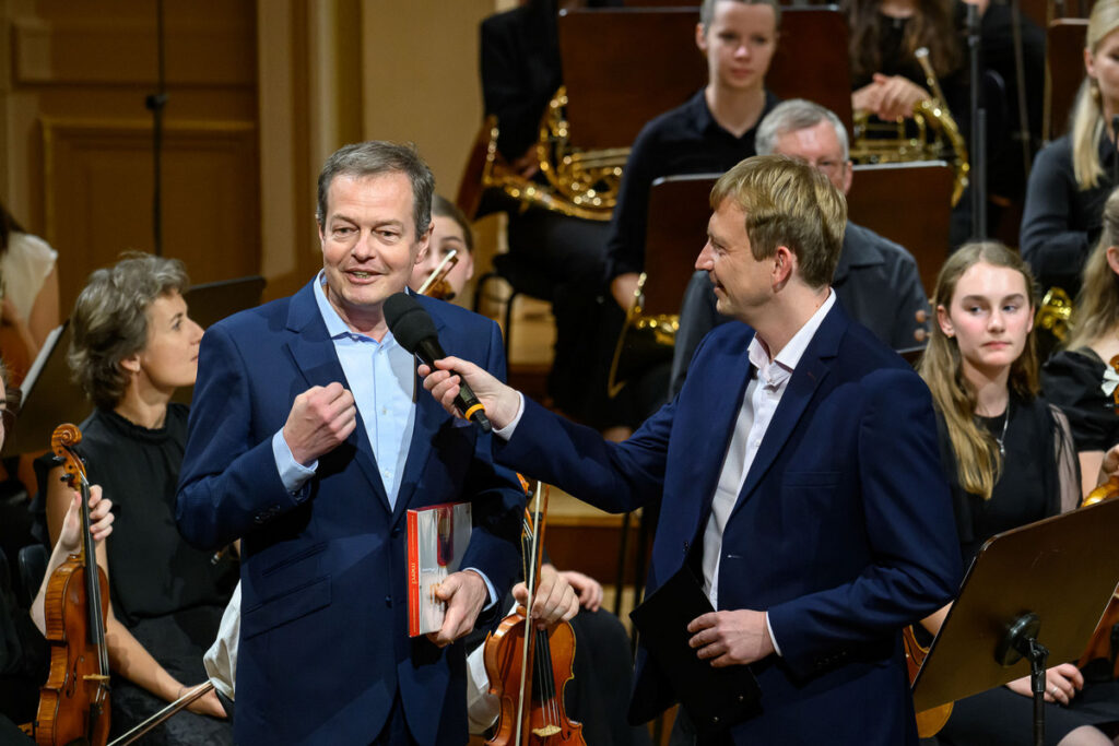 Petr Altrichter je krom toho moderátorský talent a všechny si získal po dvou větách. Ke každé skladbě měl několik osobitých postřehů, které něčím nalákaly. A pak tu byly ještě dva další vstupy vedoucího Edukačního oddělení České filharmonie Petra Kadlece, který je též známým hudebním publicistou a autorem studentských koncertů. V roli moderátora přesně trefil polohu mezi přátelskou vlídností a profesionalitou, při které nesmí na nic a na nikoho zapomenout. V prvním vstupu přivítal a představil vzácně mimopražské publikum, žáci ZUŠ byli tentokrát z kraje Vysočina, kraje jihomoravského, pardubického a libereckého. Oslovil tři členy orchestru, kteří před deseti lety byli členy orchestru ZUŠ a dnes jsou členy České filharmonie, pozval krátce na pódium hlavního spoluorganizátora, ředitele Asociace ZUŠ Tomáš Kolafa – a ani ten nemluvil dlouho a zbytečně oficiálně, zato předal bonboniéru nejmladší účastnici v orchestru, které bylo jedenáct let. Ke všem poděkováním, která zazněla, se musíme připojit.