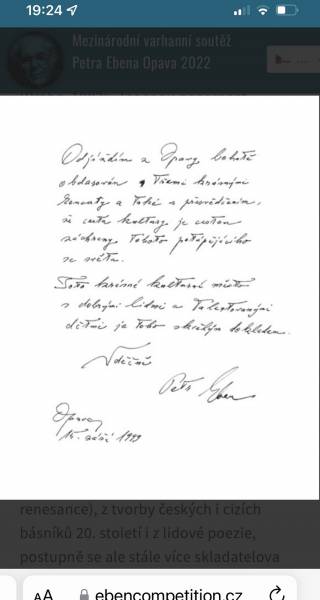 „Ke spolupráci byl přizván od roku 1986 i Petr Eben a připravil pro varhaníky milý dárek – zkomponoval tři miniatury.“