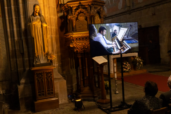 Úvod večera patřil Alfredu Habermannovi, nadějnému varhaníkovi, jenž brzy dokončí svá studia na HAMU. Už ve svých šestadvaceti letech je hráčem ovládajícím královský nástroj perfektní technikou s potřebným citem, střídajícím jednotlivé polohy bez okázalých gest, ale s dokonalým zaujetím (vedle manuálu byla umístěna snímací kamera, takže kromě zvukového dojmu se návštěvníci koncertu mohli opájet i detailním pohledem na fyzický výkon umělce). Con moto maestoso a Andante tranquilo z Mendelssohnovy Sonáty č. 3 A dur, op. 65 navodily v kostele v Habermannově suverénním podání poklidnou důstojnou atmosféru, dávající zapomenout na strasti vnějšího světa.