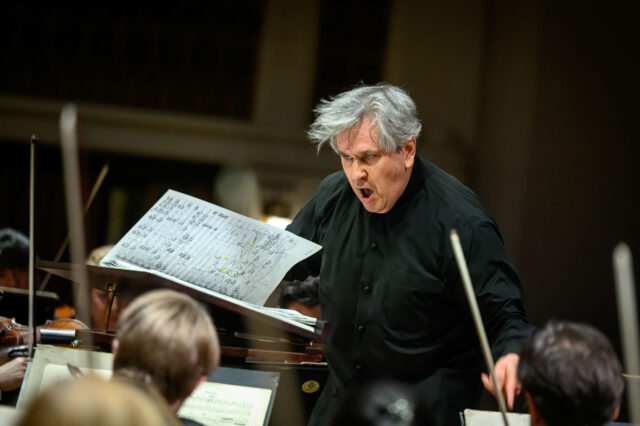 Smetanovou síní burácí zvuk vydávaný více než třemi stovkami hudebníků. Vrcholí první část Symfonie tisíců, půlhodinové fortissimo vzývající Ducha Stvořitele. Když už se zdá, že provedení nejde dál stupňovat, přichází poslední akord, aby ukázal, že lze… Osmdesáté Pražské jaro uzavírá třetí červnový den kompozice, ke které se jen těžko dá najít rovnocenný protějšek. A podlahou i tělem každého posluchače jako základ té zvukové masy rezonuje mohutný hluboký tón varhanního pedálu… Zážitek nemající téměř obdoby. Fotografie ze zákulisí nicméně nabízejí i trochu jiný, racionálnější pohled na festival.