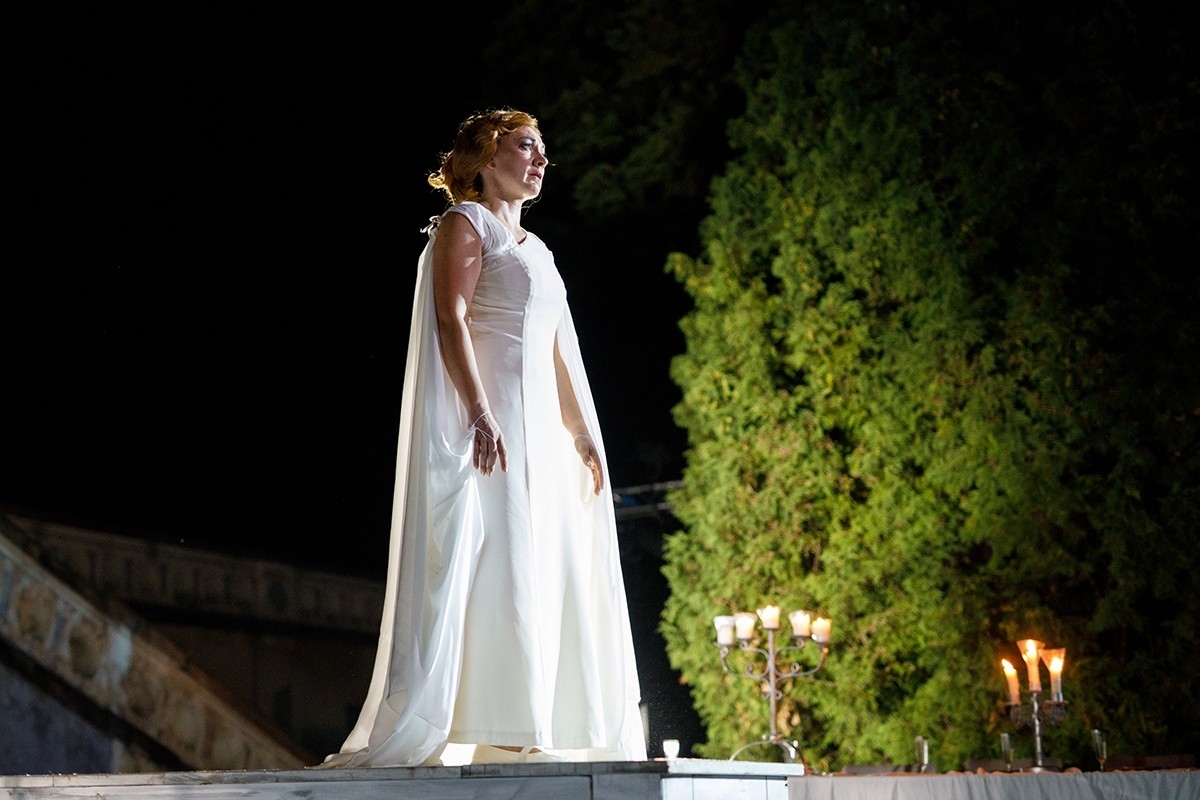 Pěvecké výkony probíhaly v Blatné v jakési zvukové „zmenšenině“, nedořešenou amplifikací. Nechci proto výkony rozebírat, nepokládám to v daném momentu, za vytrvalého a nepříjemného deště, za adekvátní. Myslím, že pěvci večera udělali ve vytrvalém dešti maximum možného. Vyslovuji osobní obdiv a vysoké uznání, že zejména představitelé ústředních rolí, vystaveni nejvíce ze všech nepřízni počasí, podali dobré výkony. Snadno si domyslím, že v lepším akustickém prostoru či při obdobné volbě amplifikace à la zmíněný José Cura by výkony vyzněly v prostorové nosnosti přesvědčivěji.