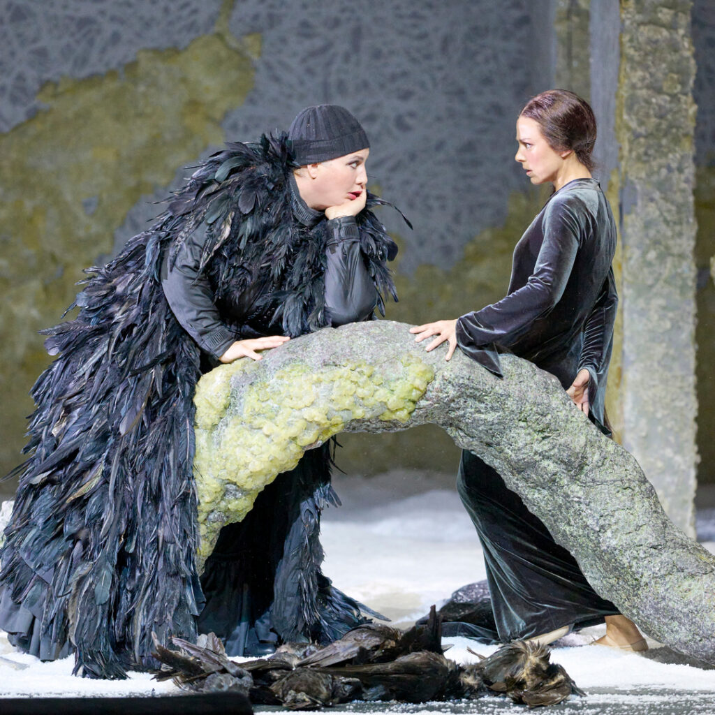 Příjemné bylo dívčí trio lesních žínek, zpočátku lehce rozverné, později dravě krvežíznivé. První soprán Anny Voshege měkce zářil, druhý soprán Julietty Mars sametově hladil a jen mezzosoprán Darii Suschkové byl o něco ostřejší, což někdy narušovalo soulad tria. V menších rolích příjemně překvapili jako Hajný Stefan Astakhov, německý barytonista s ruskými kořeny, a australská mezzosopranistka Margaret Plummer jako Kuchtička – oba přinesli přirozený pěvecký projev a překvapivě dobrou češtinu. Měkký zpěv nabídl i ukrajinský barytonista Nikita Ivasechko jako Lovec za scénou.
