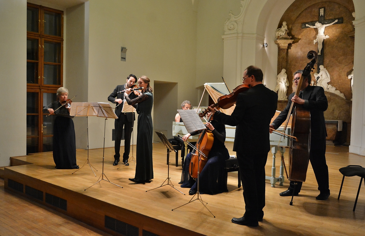 Někdo považuje hudbu Johanna Sebastiana Bacha za strnulou a jeho kompoziční styl za příliš racionální a s domnělou vizí jeho hudby jakožto převážně duchovního, hlubokého a těžkého rázu ji rovnou smete ze svého posluchačského stolu dříve, než se do ní skutečně zaposlouchá. Avšak na včerejším koncertě jsme znovu mohli být přesvědčeni o tom, že jeho hudba jsou cokoli jiného, jen ne strnulost, vážnost a racionální těžkomyslnost. Barbara Maria Wiili, Jana Semerádová a Collegium Marianum v obsazení Lenka Torgersen a Vojtěch Semerád (housle), Andreas Torgensen (viola), Helena Matyášová (violoncello) a Ondřej Balcar (kontrabas) včera přednesli barokní hudbu mnoha tváří a výrazů, převážně však hudbu energickou, živou, tanečního rázu. Orchestrální suitu č. 2 h moll Bach komponoval jako čtvrtou a poslední v řadě svých orchestrálních suit (či ouvertur, jak bývá často zaměňováno). V době vrcholného baroka se tento reprezentativní žánr komponoval v tzv. smíšeném stylu (tj. styl, který spojuje tradici francouzskou a italskou), tedy s francouzskou ouverturou v úvodu, která je charakteristická svým ostře tečkovaným rytmem v úvodní a závěrečné části, která bývá energická a majestátní. Ty střídá odlehčenější střední část. Tuto francouzskou ouverturu potom následuje sled tanců, které byly jedním ze stěžejních projevů barokní hudby, což se odráží v množství dochovaných suit. Střídání tanců Rondeau, Sarabande, Bourées (I a II), Polonaise, Double, Menuett a Badinerie, jak jsou řazeny v Bachově suitě h moll, připravuje interpretům dostatečnou plochu, na které mohou předvést nejen své porozumění barokní taneční hudbě a hráčskou a technickou vysokou úroveň a virtuozitu, ale také cit pro vystihnutí charakteru a nálad. Zároveň je zapotřebí docílit takové souhry a soudržnosti všech částí, aby vytvořili skutečně dojem jednolitého a smysluplného hudebního celku. Takového provedení může docílit jedině těleso vynikajících interpretů, kteří rozumí hudbě i sobě navzájem a hudbu společně prožívají. Už od prvních tónů bylo právě na hře Collegia Marianum nápadné toto jejich vnitřní sepětí, které se projevilo naprostým souzněním v cítění hudební fráze i afektu dané části, zejména v přechodových pasážích mezi jednotlivými větami (tanci) nebo i mezi frázemi uvnitř tanců, při drobných změnách temp či v občasných a leckdy nečekaných drobných agogických pohybech, které měli interpreti zvlášť dobře promyšlené a společně procítěně. Každý jednotlivý tanec hráli s odlišením nálady a energie, kterou chtěli vyjádřit, avšak vždy naprosto jednotně. Bylo krásné pozorovat, jak jednotliví hráči mezi sebou na pódiu komunikují, jak si předávají vzájemně důležitost rolí i jejich spokojenost a radost z toho, že každý z nich je důležitou hybnou silou v celé tvůrčí činnosti.
