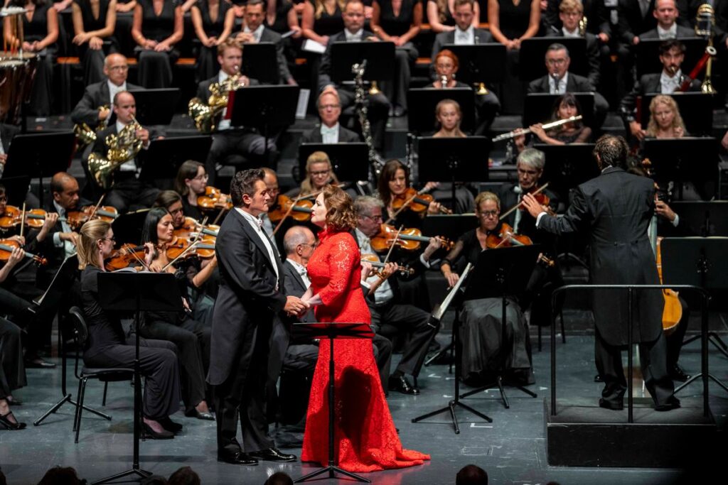 V pondělí 25. srpna nabízel festival kupodivu jen dvě události ze svého programu. Ve velkém sále Mozartea vystoupili houslistka Patricia Kopatschinskaja a klavírista Joonas Ahonen s výběrem skladeb od Beethovena až po Schönberga. A pokud vynecháme promítání na Kapitelplatzu (toho večera se dávala Monteverdiho Korunovace Poppey z roku 2018), směřovala veškerá pozornost k dalšímu napjatě očekávanému koncertu v Grosses Festspielhaus. Jak už jsem zmínil v úvodu, kromě scénicky zpracovaných operních titulů se ve festivalové nabídce objevilo i patero koncertních uvedení oper. Ve dvou případech šlo o klasická díla dávné historie (Rameauův Castor a Pollux, Mozartův Mitridates, král pontský), v dalších dvou o díla soudobých autorů (Jarellova Kassandra a Sciarrinův Macbeth) a jedno zůstalo stylově a co do období vzniku poněkud stranou. Zato se ale z uvedeného výběru jednalo o operu zdaleka nejznámější a posluchačsky nejoblíbenější. A právě ta byla na programu onoho pondělního večera: Andrea Chénier skladatele Umberta Giordana z roku 1896.