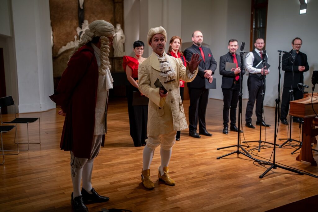 Již tradičně nemohl chybět Johann Sebastian Bach v podání Luďka Randára, ani Wolfgang Amadeus Mozart zosobněný Radovanem Králem. Johann Sebastian Bach tentokrát vstoupil na pódium rozladěn. „Jak můžete být rozladěn s tolika pěvci absolutního sluchu?“ podivil se Mozart. „Jak mohu být nerozladěn, když vidím zpívat v altu i sopránu ženy? Ještě že je tam aspoň jeden altista!“ Podivností bylo ještě víc, ale po první písni se oba zaposlouchali a začali italský text dokonce překládat.